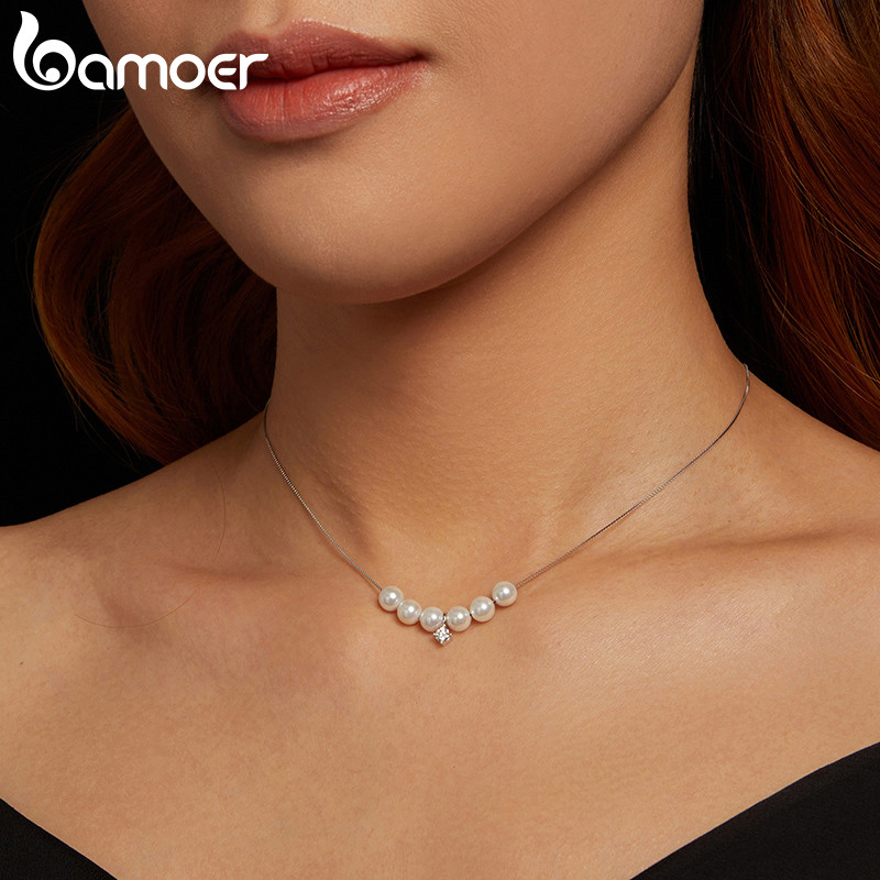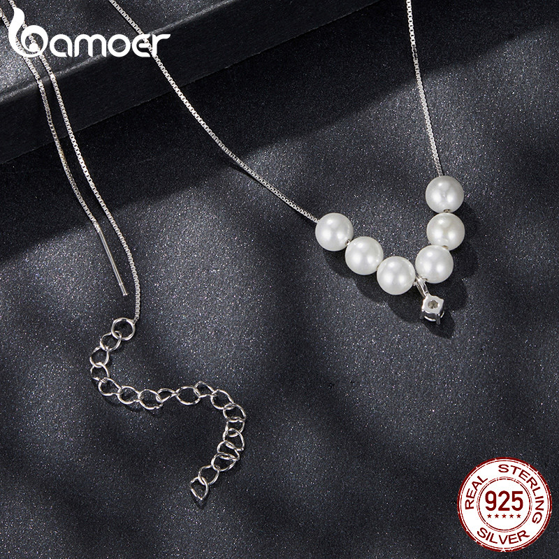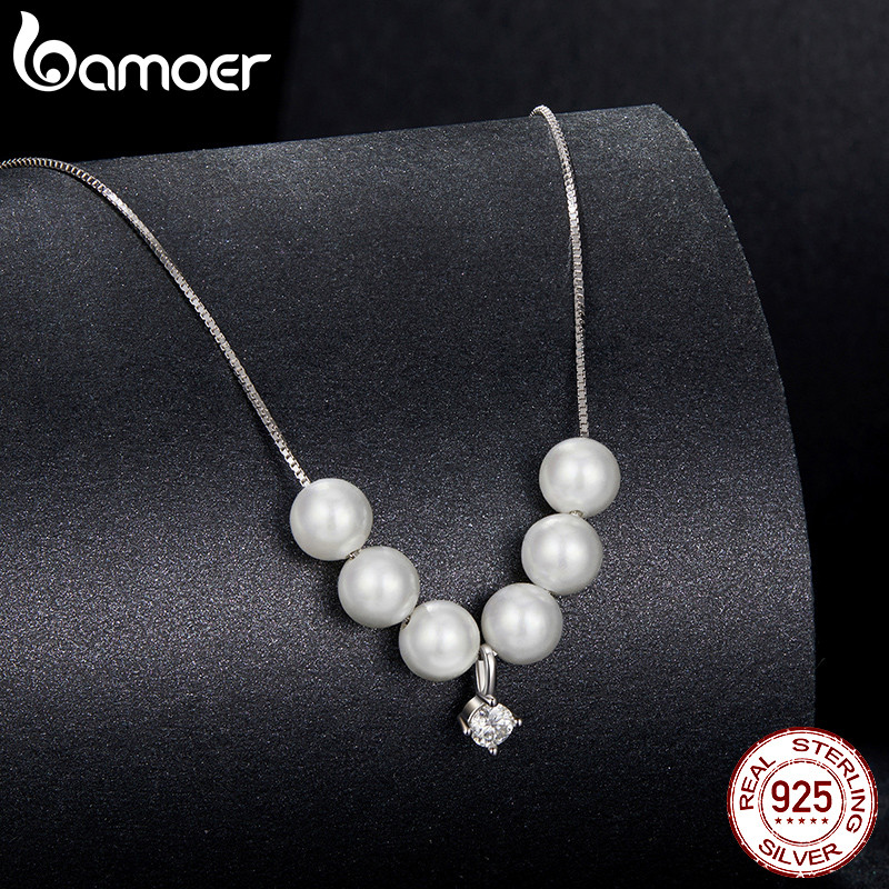 Bamoer 925 Sterling Sliver Colar Dança Pérola Moissanite Joias Presentes Para Mulheres
