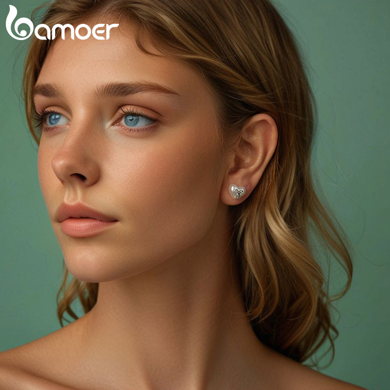 Brincos De Prata Esterlina 925 Bamoer Arco Coração Joia Presente Para Mulheres
