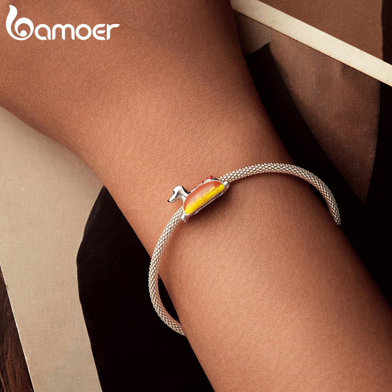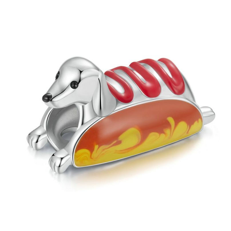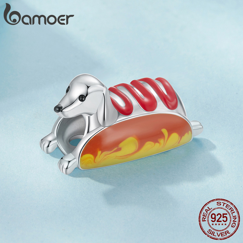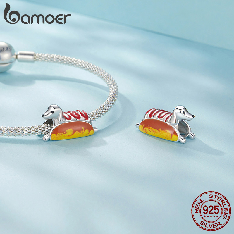 Bamoer 925 Sterling Sliver Charme Cachorro Quente Dachshund Pingente DIY Para Pulseira Presentes