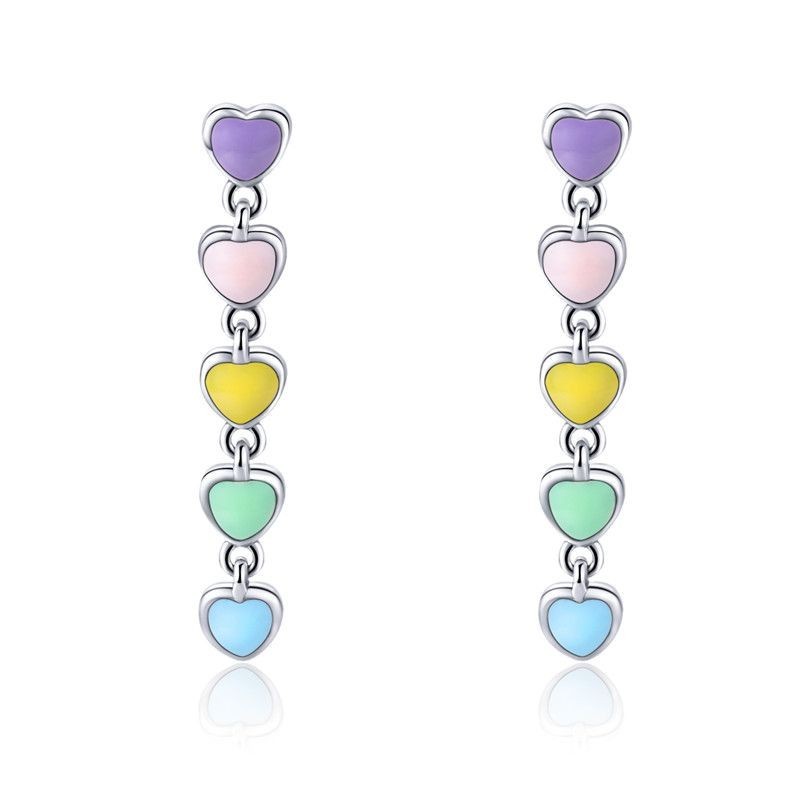 Brincos Bamoer 925 Sterling Silver Earrings Pinos De Orelha Arco-Íris Para Meninas Presentes