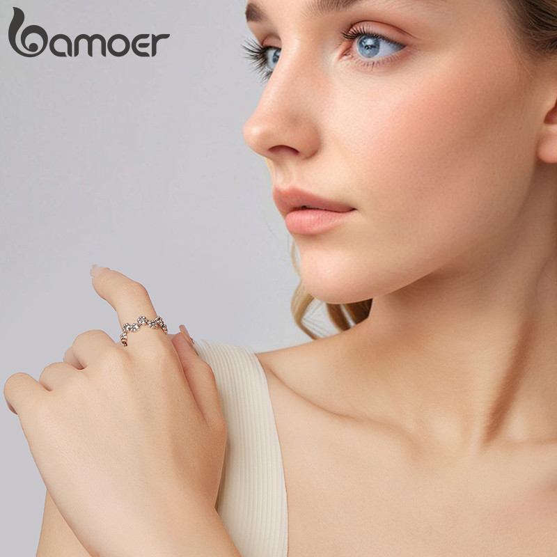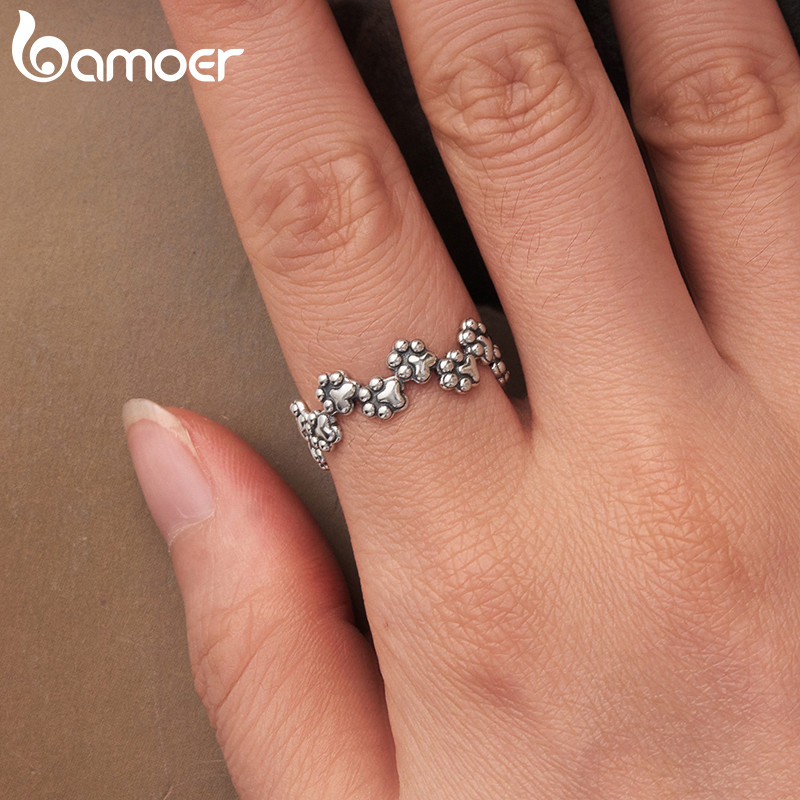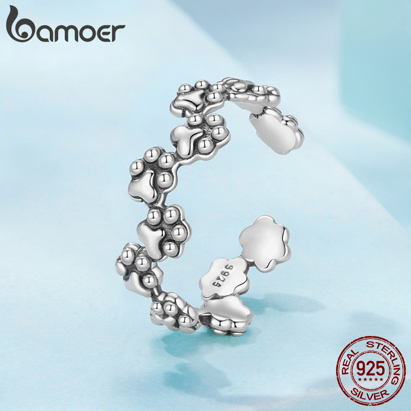 Bamoer 925 Prata Esterlina Anel Filhote De Cachorro Pata Impressão Ajustável Design Jóias Presente Feminino
