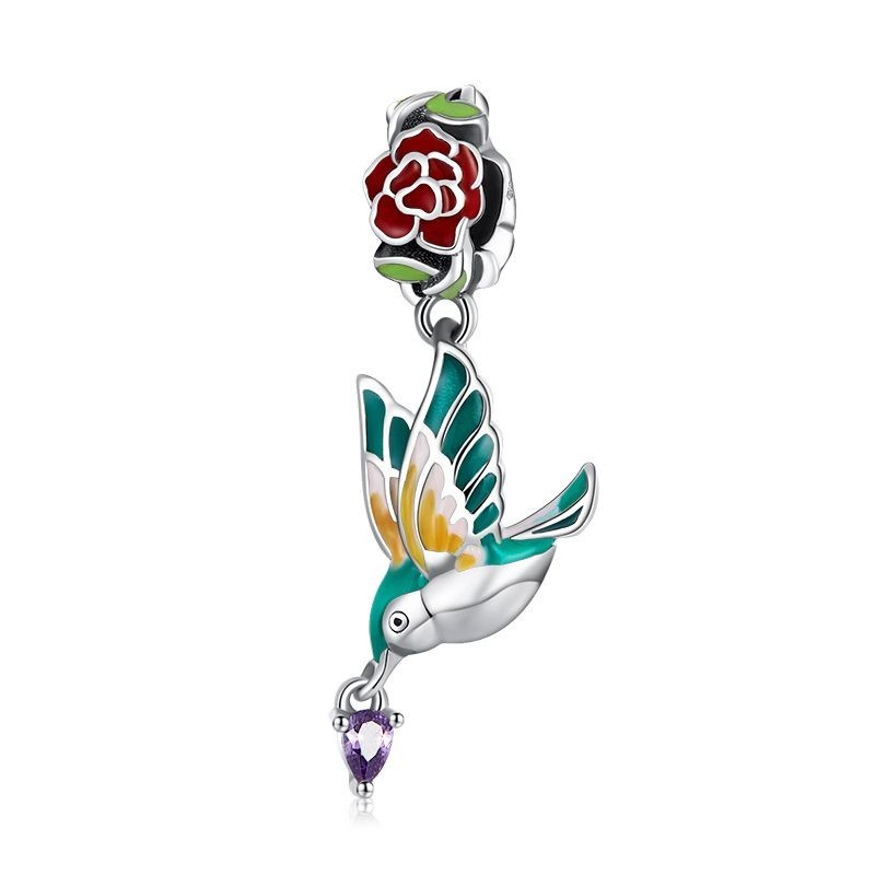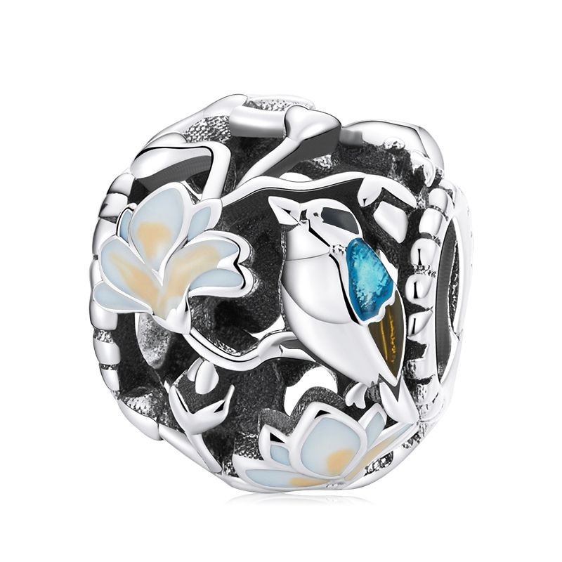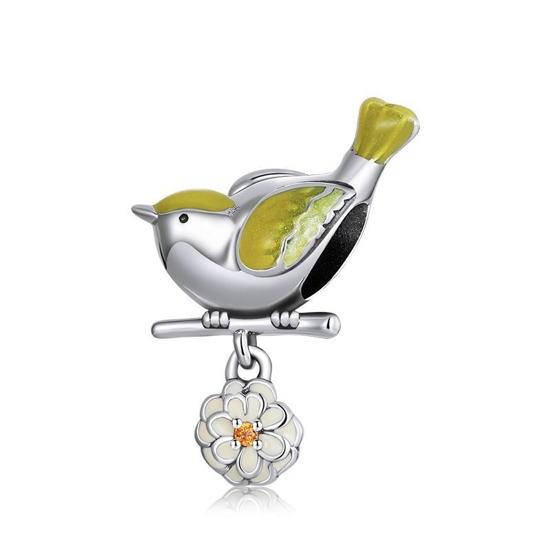 Bamoer 925 Sterling Silver Charms Colorful Garden Bird Series Pingente De Contas De Bricolagem