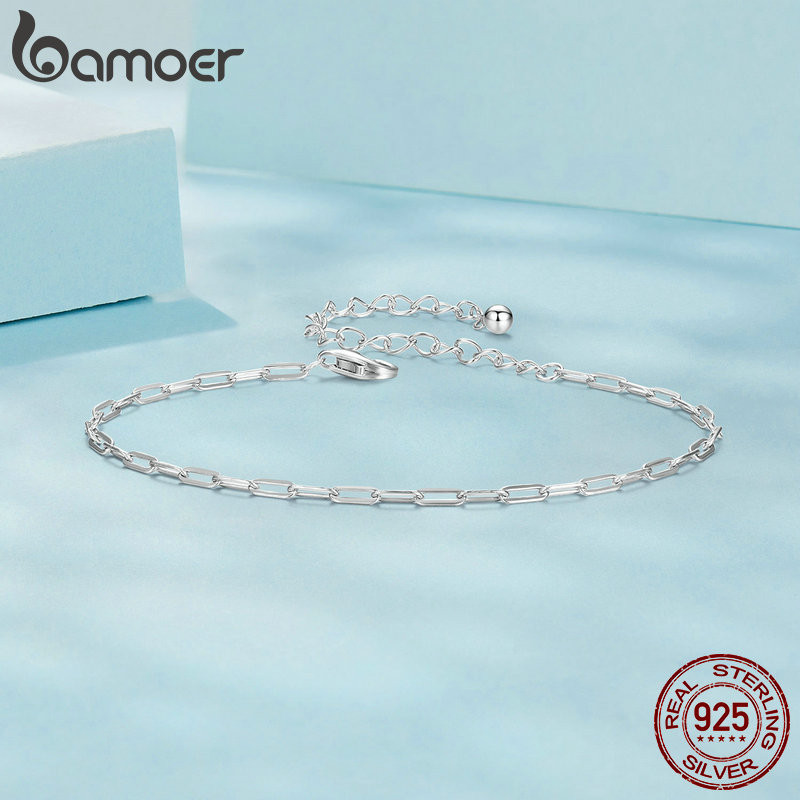 Pulseira Bamoer 925 Sterling Sliver Bracelet Jóias Quadradas Simples Presentes Para Mulheres