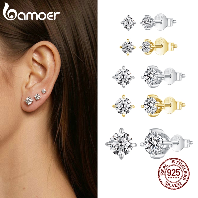 Brincos Bamoer 925 Sterling Sliver Moissanite Simples 1 Par Joias Presentes Para Mulheres