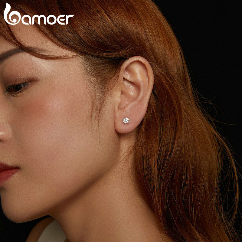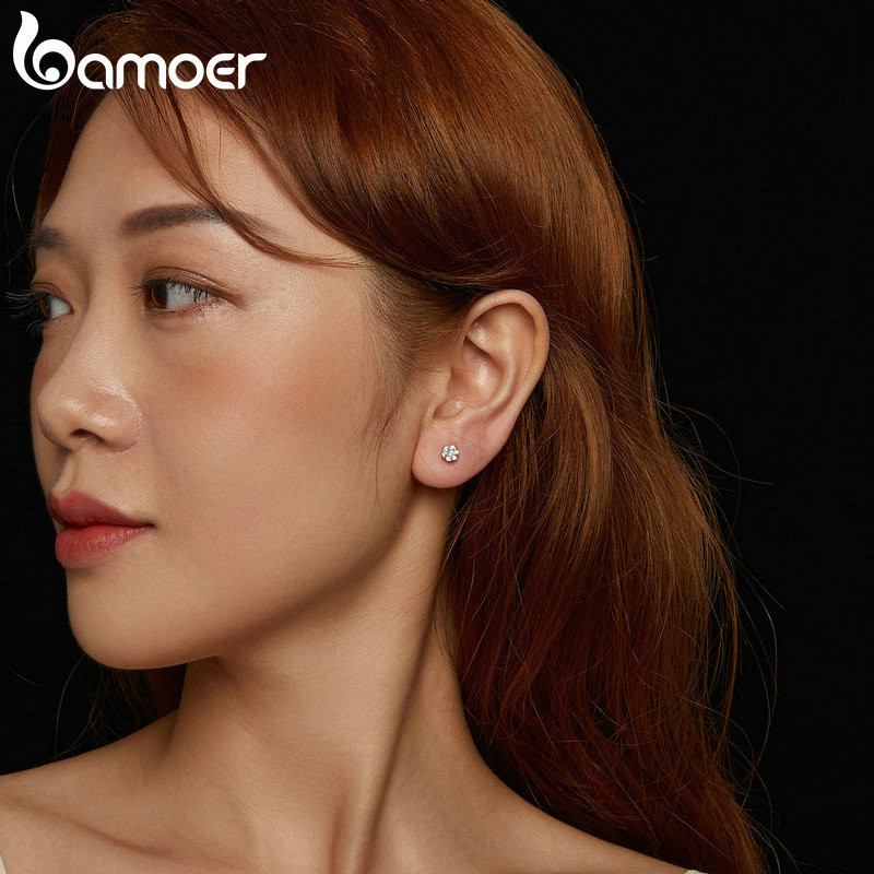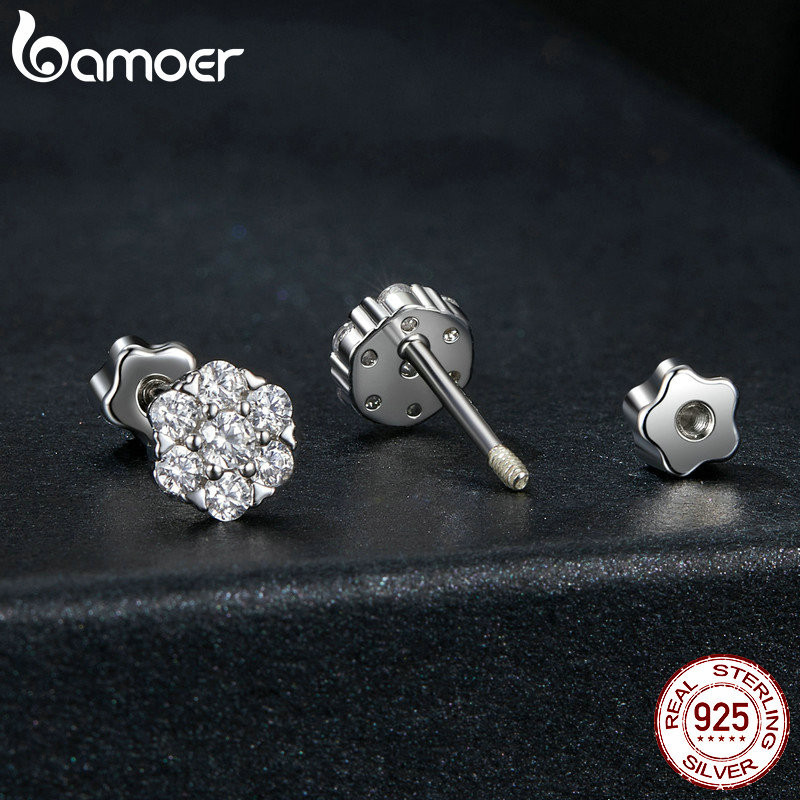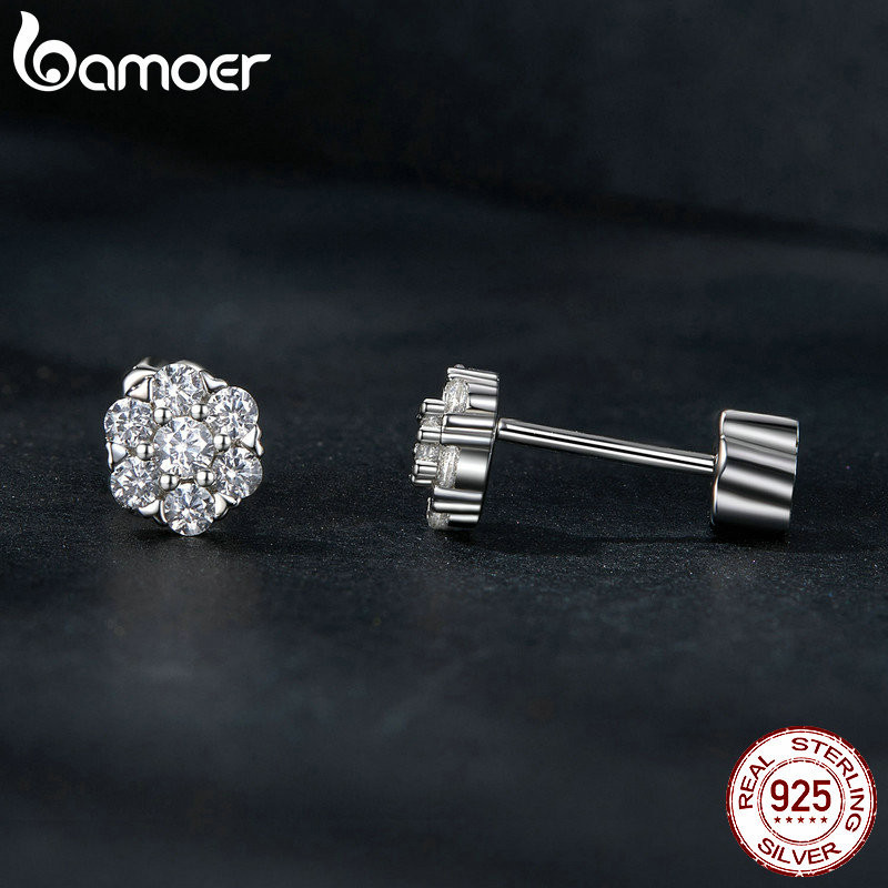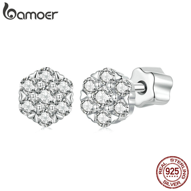 Brincos Bamoer 925 Sterling Sliver Moissanite Flower Jóias Para Mulheres