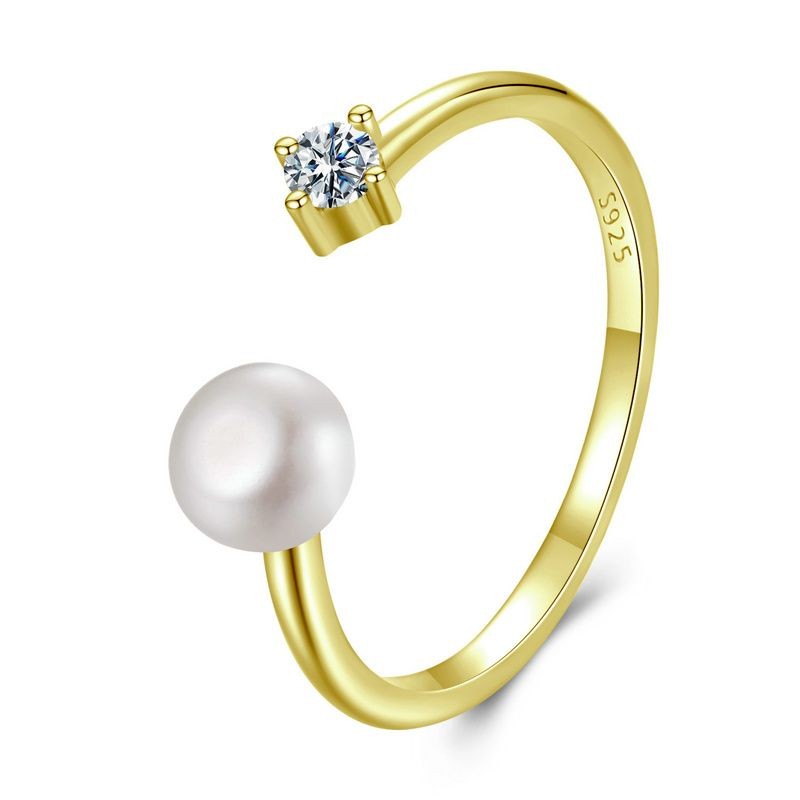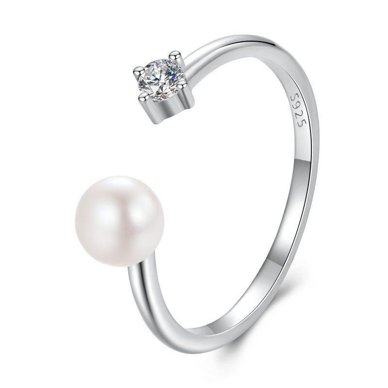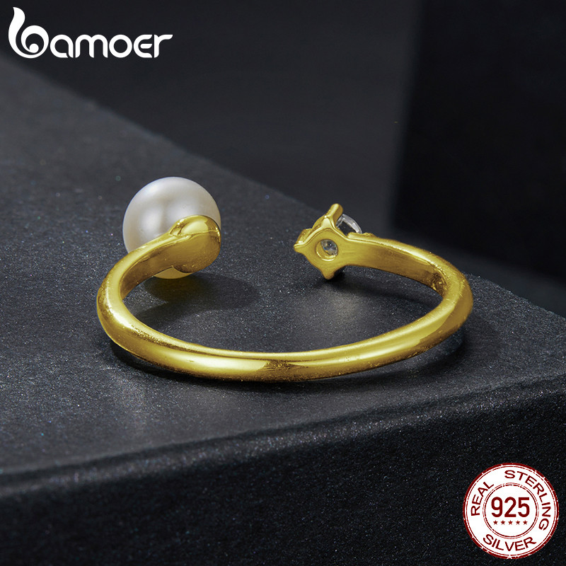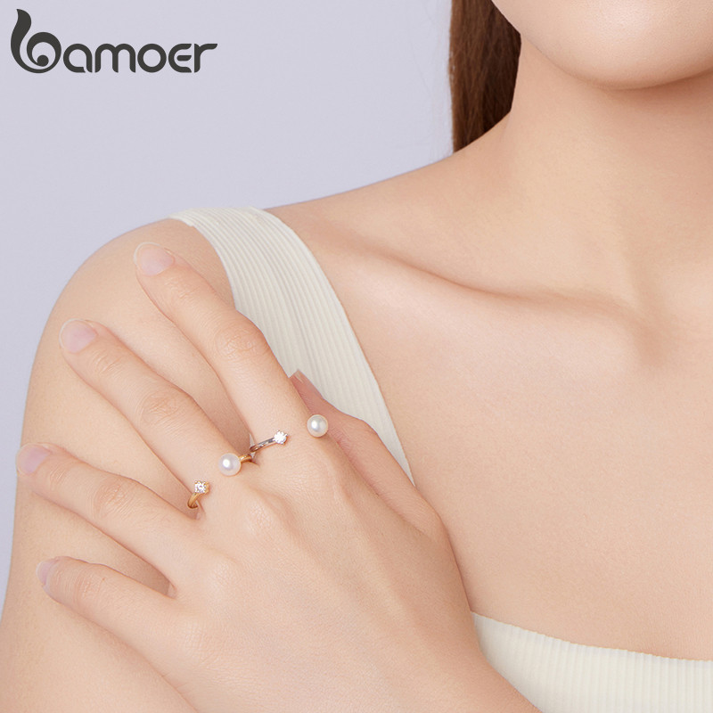 Bamoer 925 Sterling Sliver Anel Aberto Pérola Moissanite Moda Joias Presentes Para Mulheres