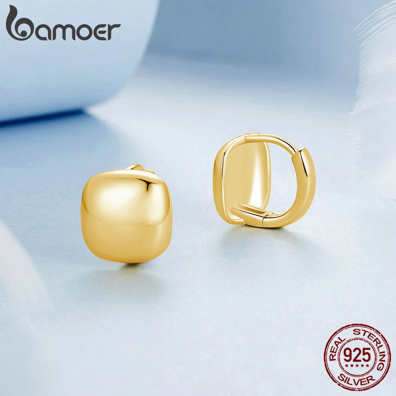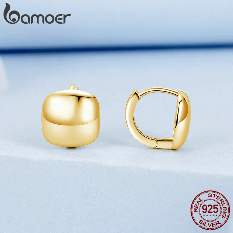 Brincos Bamoer 925 Sterling Sliver Hoop De Desenho Quadrado Jóias Presentes Para Mulheres