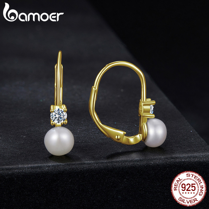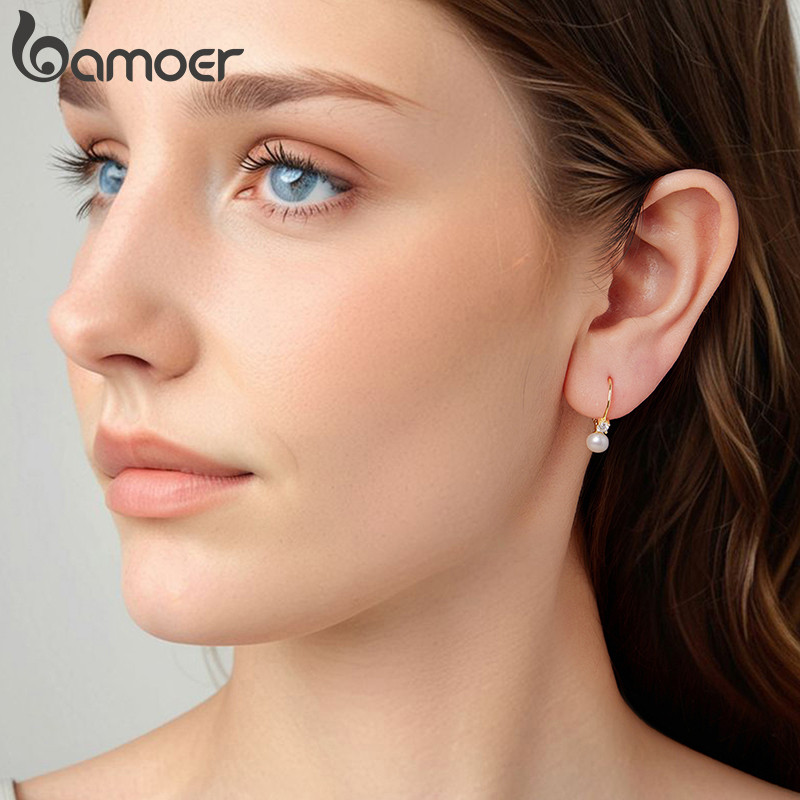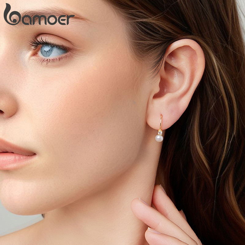Bamoer 925 Sterling Sliver Hoop Brincos Moissanite Pérola Cor Dourada Joias Presentes Para Mulheres