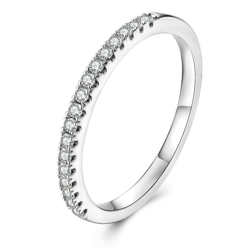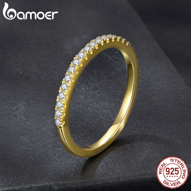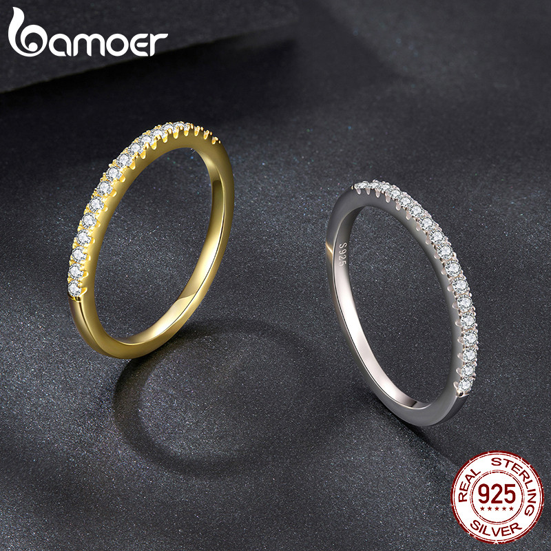 Bamoer 925 Prata Esterlina Dois Tons Meio Círculo Anel Noivado Design Jóias Presente Feminino