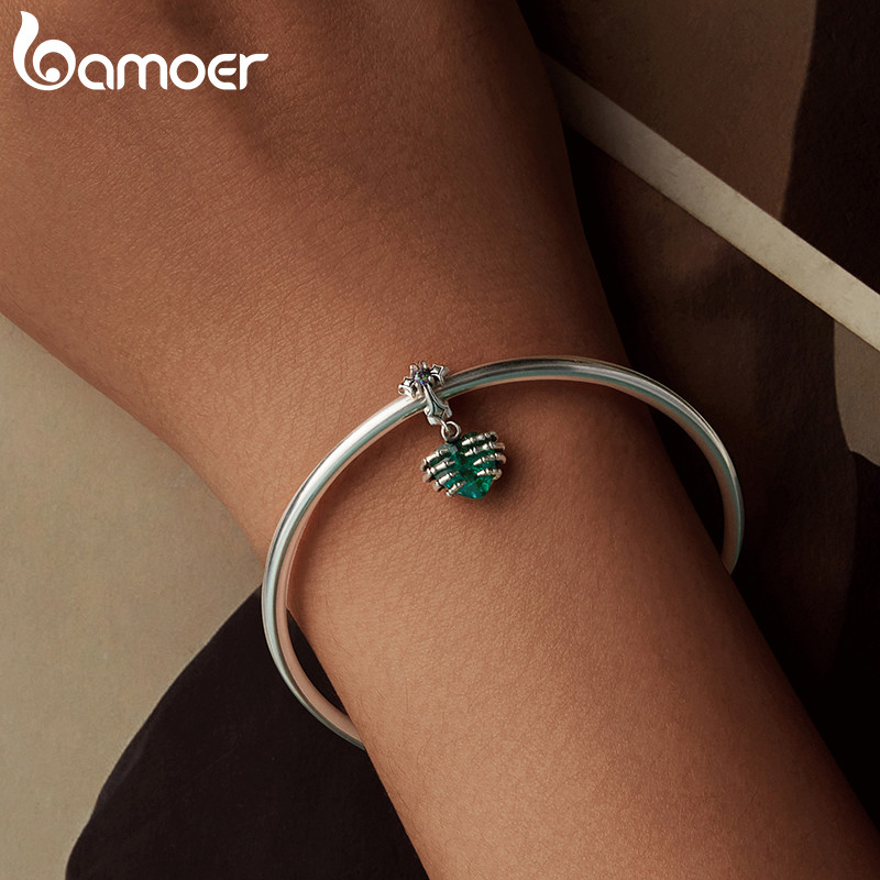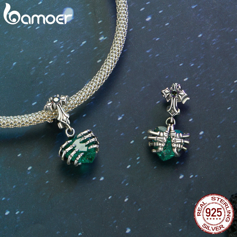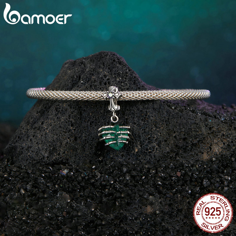 Bamoer 925 Sterling Sliver Charme Coração De Fita De Crânio Acessórios Para Pulseira