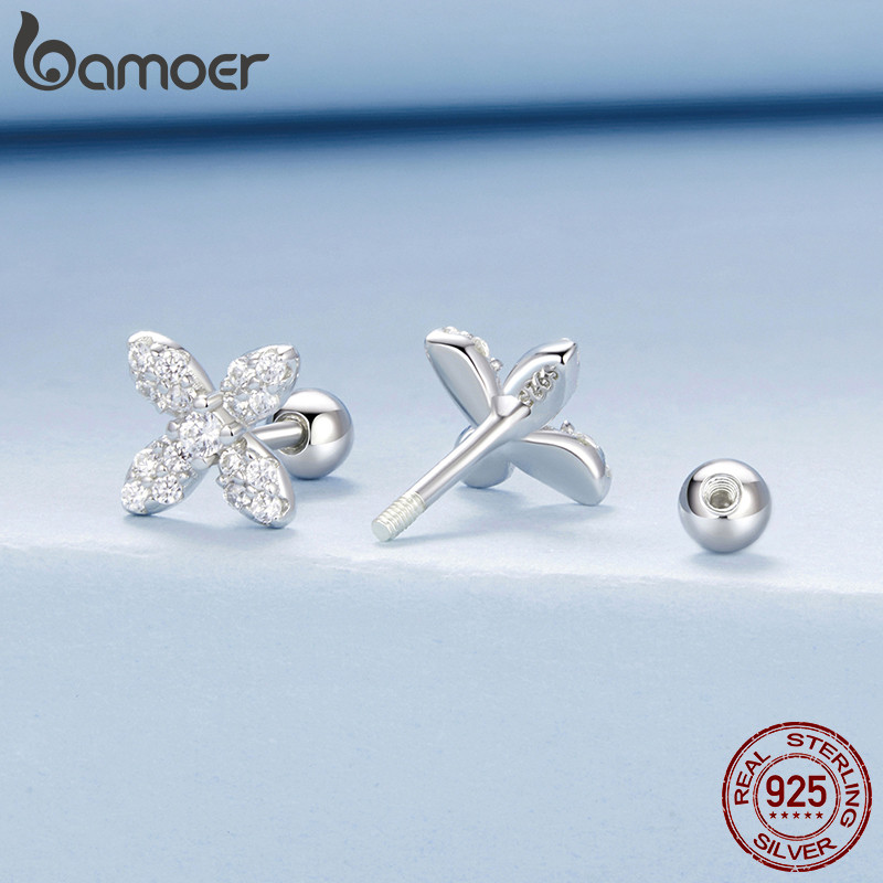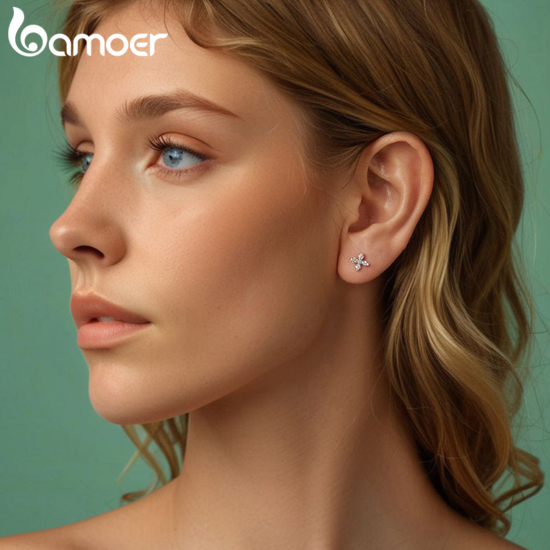 Brincos Bamoer 925 Sterling Sliver Mini Joias De Flores Presentes Para Mulheres