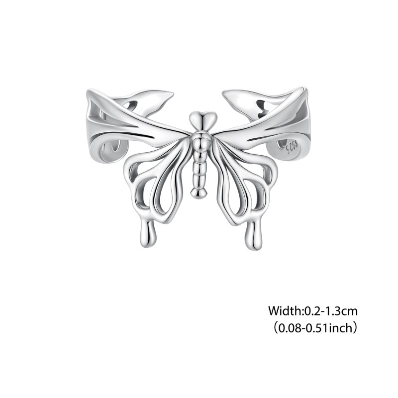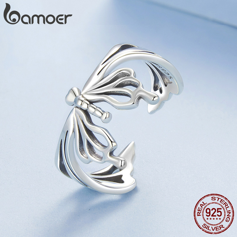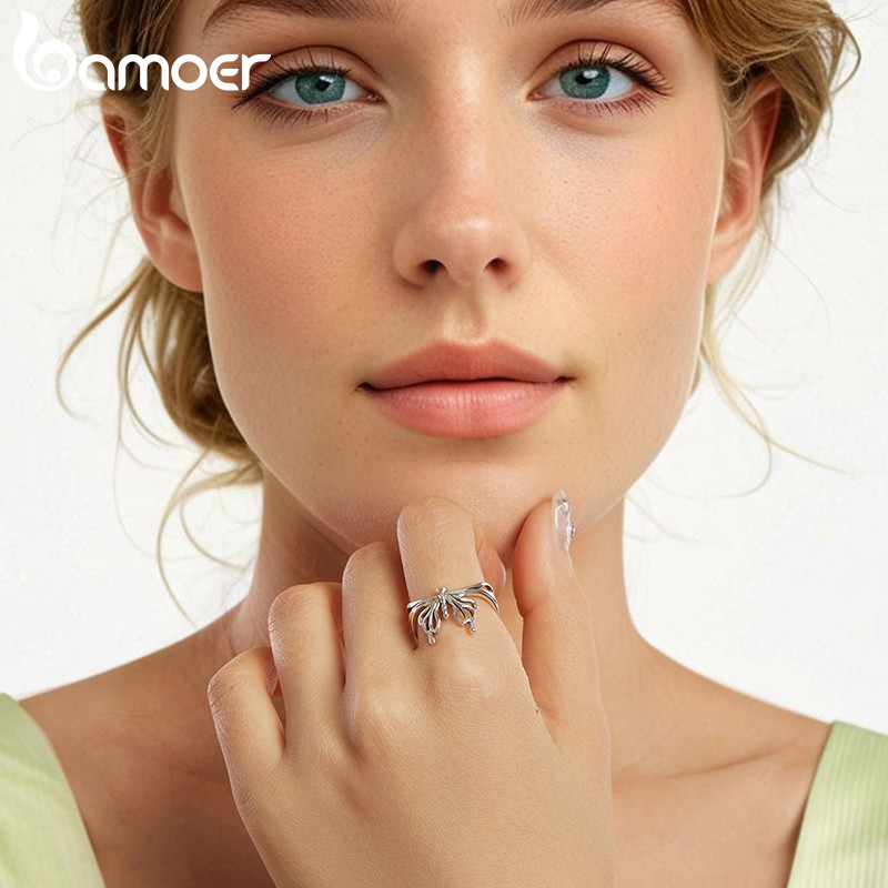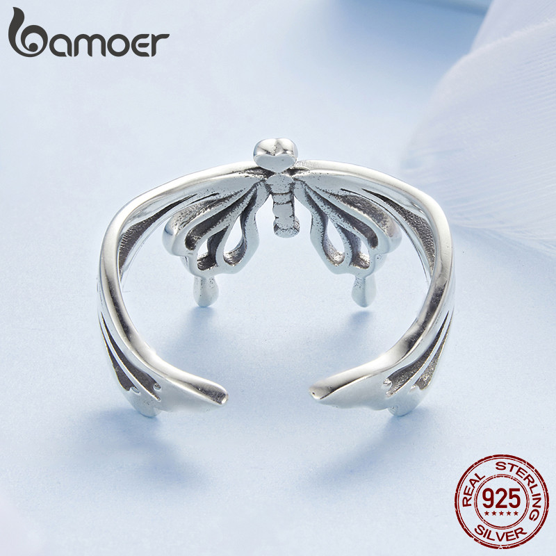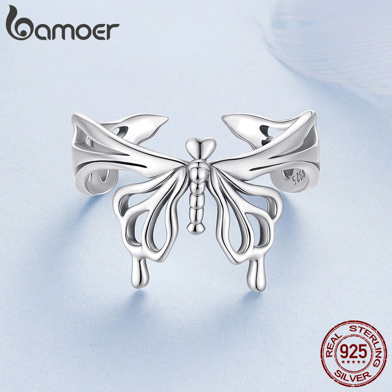 Bamoer 925 Prata Esterlina Anel Borboleta Design Jóias Presente Feminino