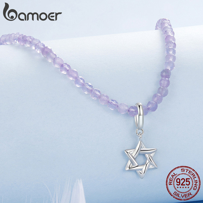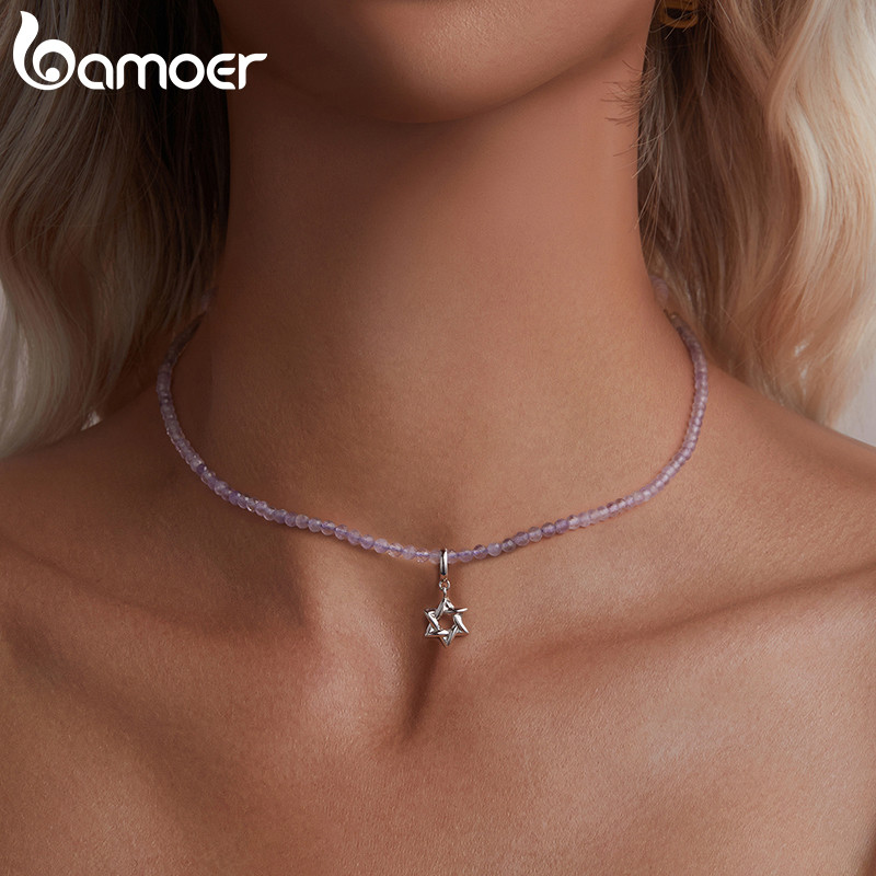 Bamoer 925 Prata Esterlina Colar Estrela De Seis Pontas Ametista Jóias Presente Feminino