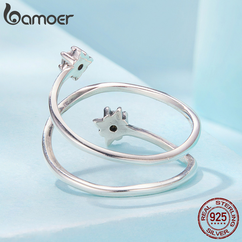 Anel Aberto De Prata Esterlina 925 Bamoer Tamanho Ajustável Estrela Joias Da Moda Presentes Para Mulheres