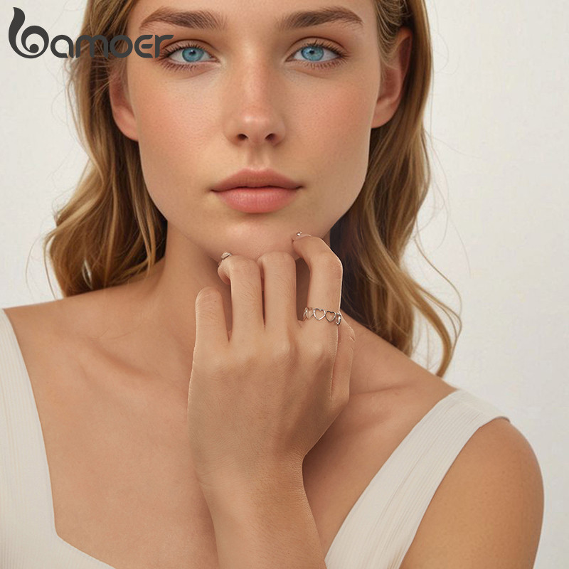 Bamoer 925 Sterling Sliver Anel Oco Coração Moda Joias Presentes Para Mulheres