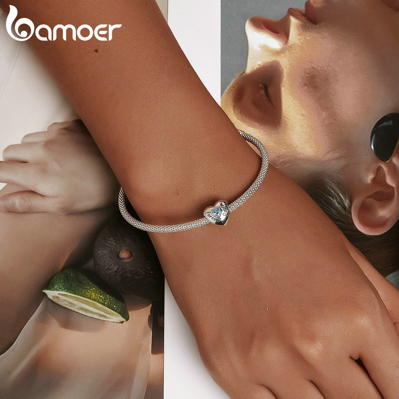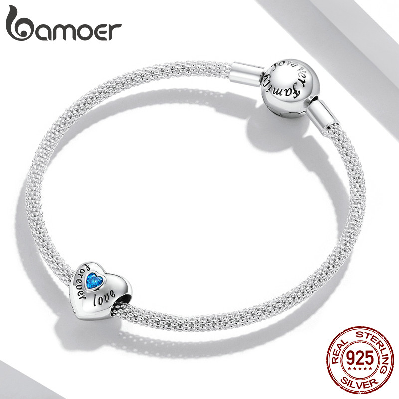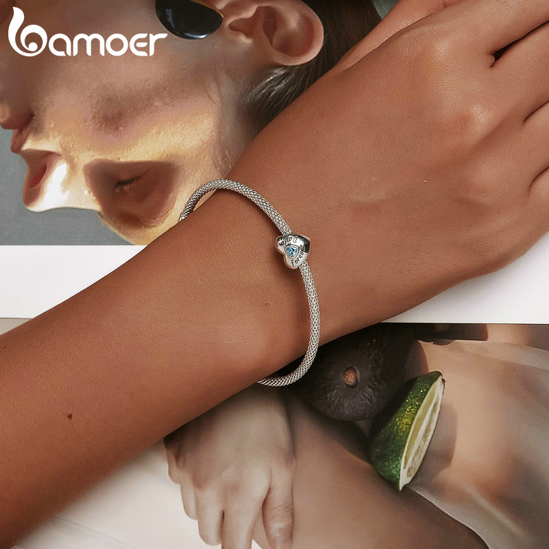 Bamoer 925 Sterling Sliver Charm Loving Family Design Simples DIY Para Pulseira Mulheres BSC562-BU