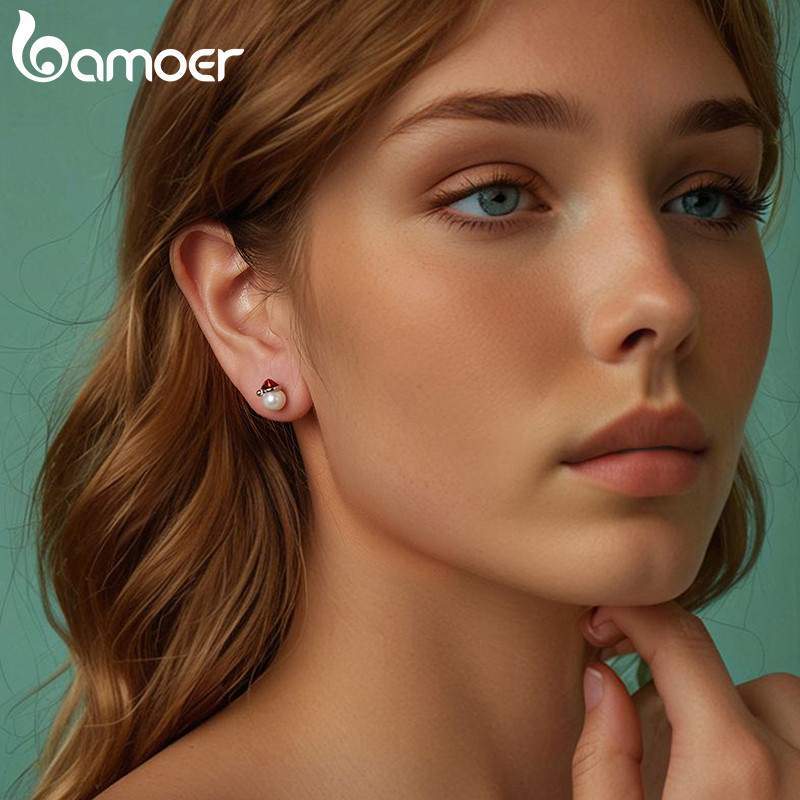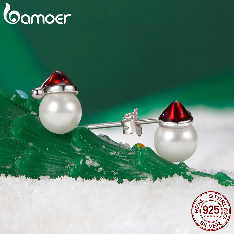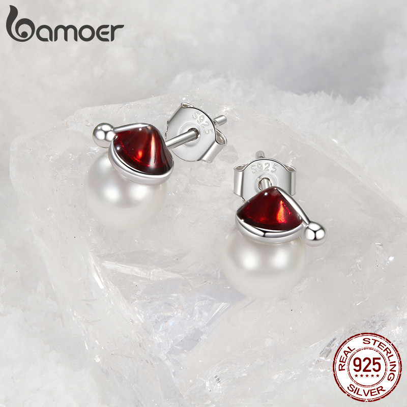 Brincos Bamoer 925 Sterling Sliver Chapéu De Natal Joias De Pérolas Presentes Para Mulheres