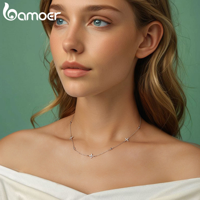 Bamoer 925 Sterling Sliver Colar Flor Design Joias Presentes Para Mulheres