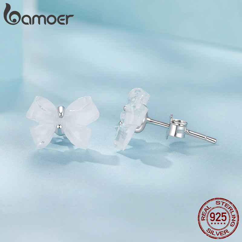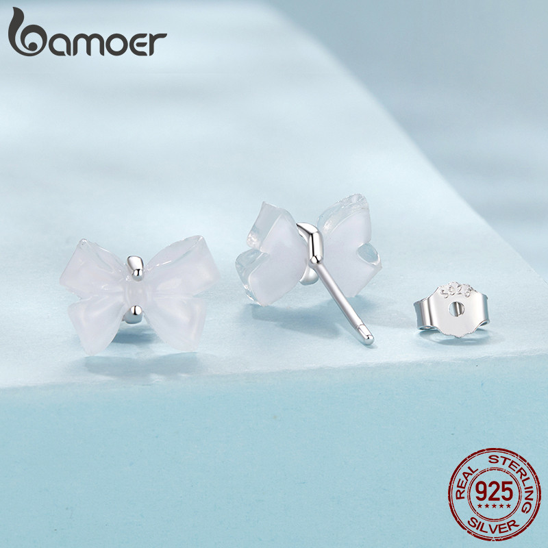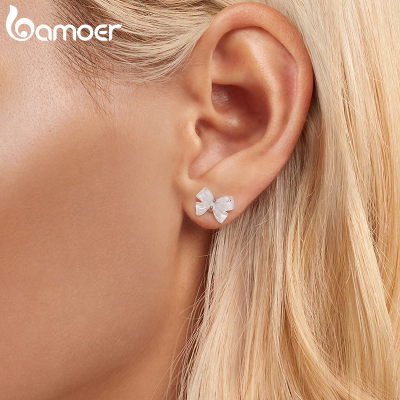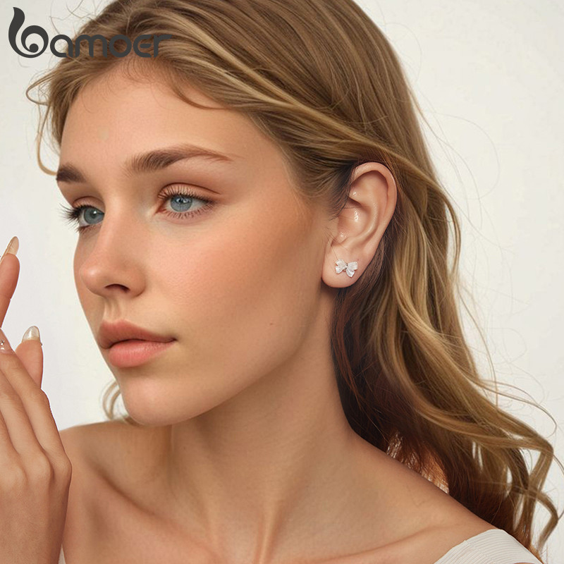 Bamoer 925 Sterling Sliver Stud Brincos Arco Joias Presentes Para Mulheres