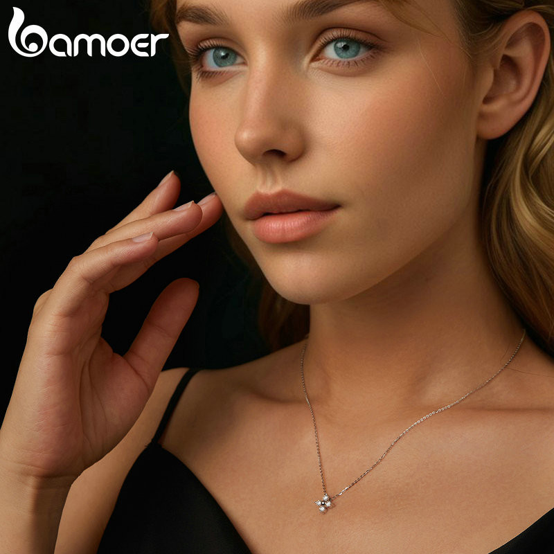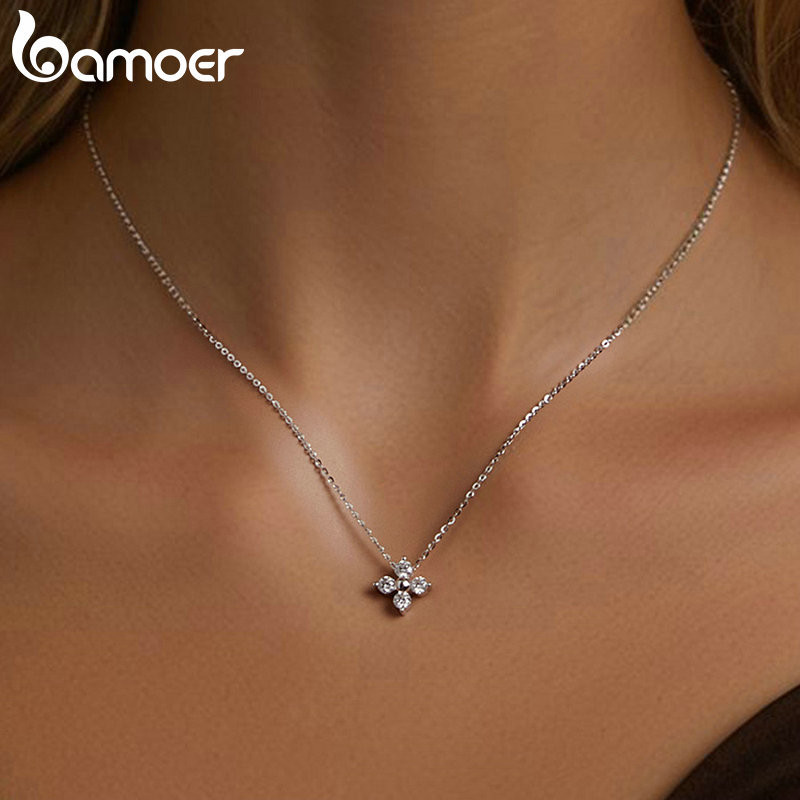 Colar De Fita De Quatro Folhas De Trevo Moissanita Bamoer 925 Sterling Presentes Para Mulheres