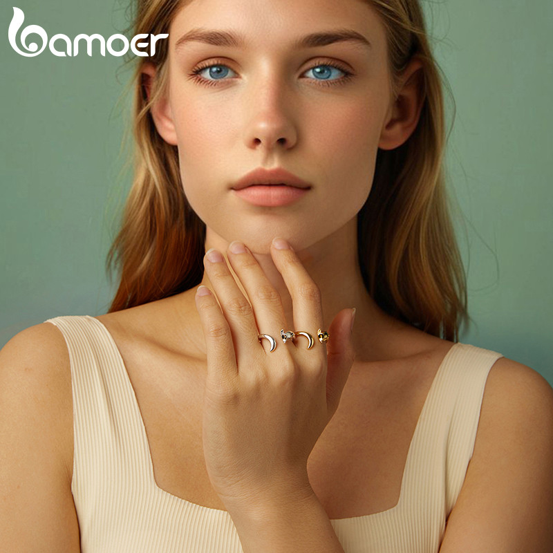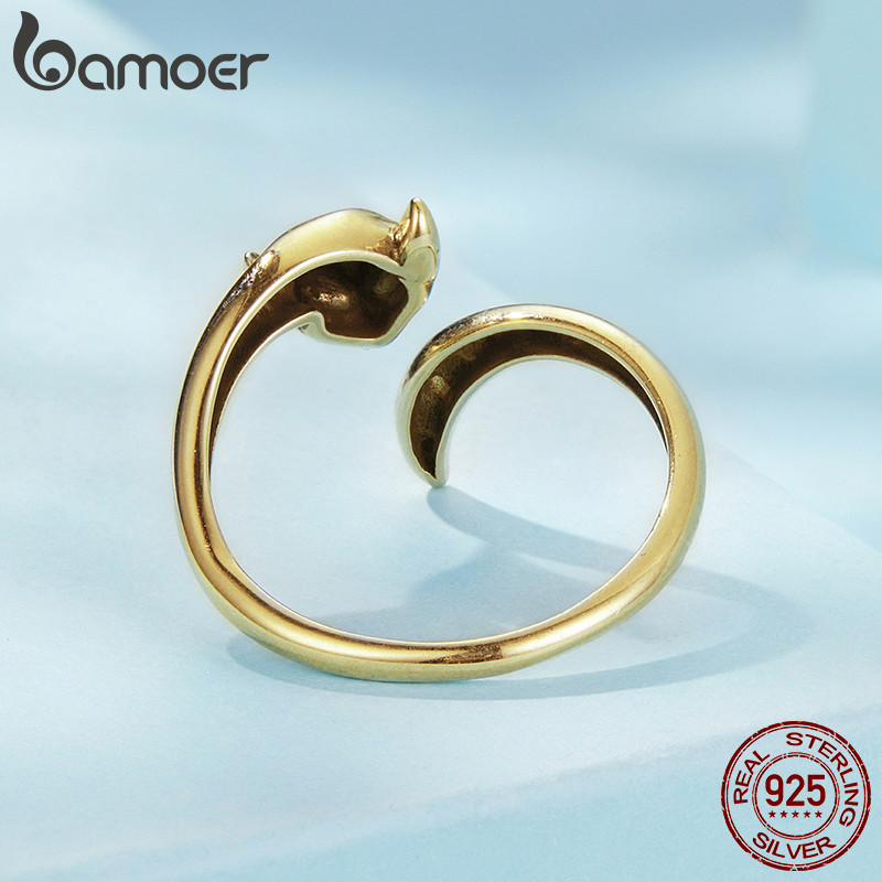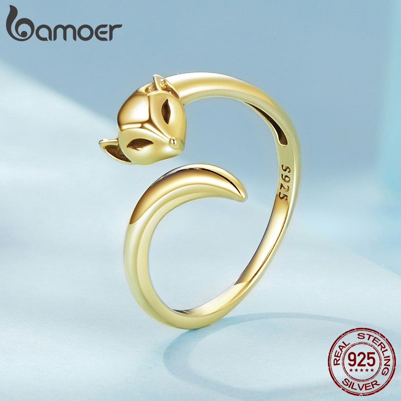 Bamoer 925 Sterling Sliver Anel Aberto Fox Design Moda Joias Presentes Para Mulheres