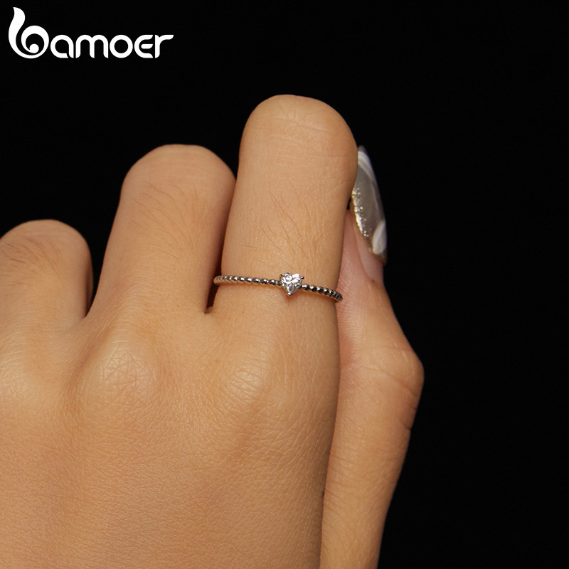 Anel De Prata Esterlina 925 Bamoer Coração Moissanite Presentes Elegantes Para Mulheres MSR063