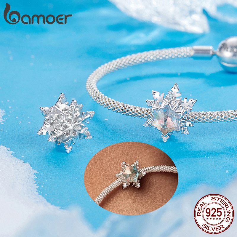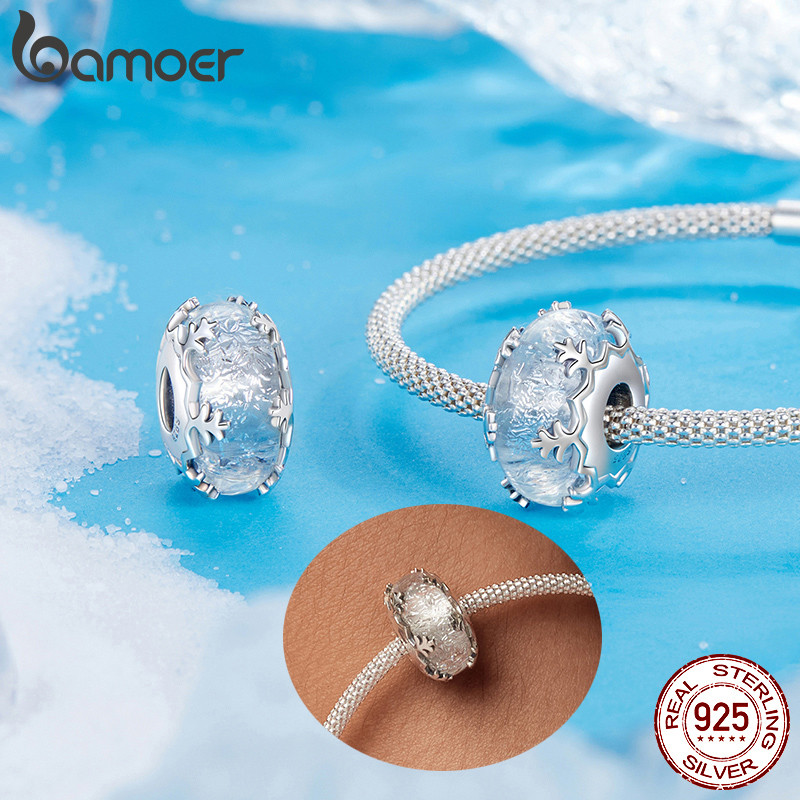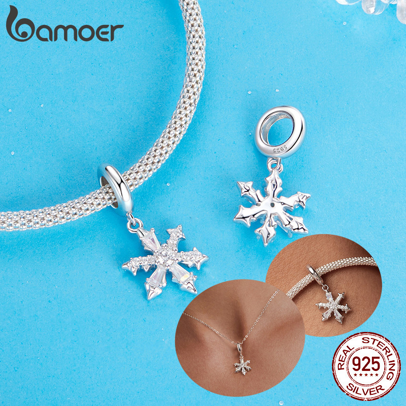 Bamoer 925 Sterling Sliver Charm Neve Gelo Cristal Inverno Pingente Acessórios Série Para Pulseira