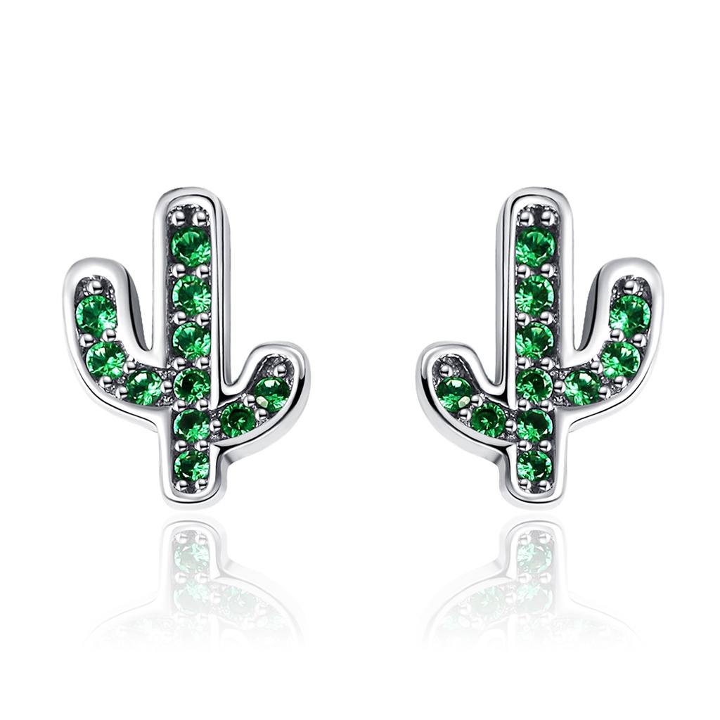 Bamoer Brincos Femininos De Prata Esterlina 925 Verde Cacto Jóias SCE097