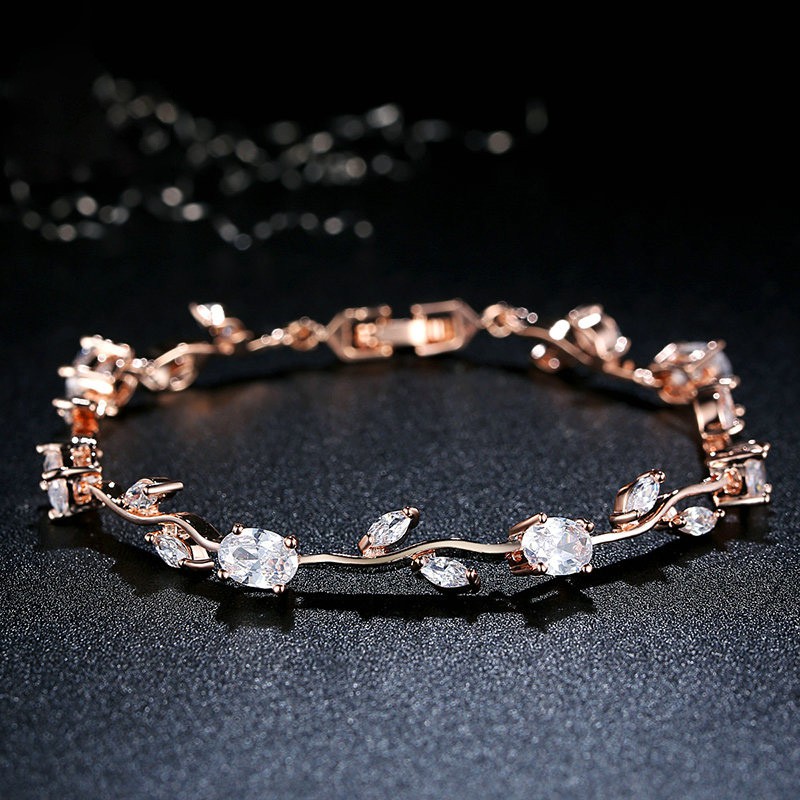Bamoer Pulseira Com Folha De Rosa Cor De Ouro & Elo Vermelho + Verde AAA Zircon Para Presente/Mãe Jóias JIB072