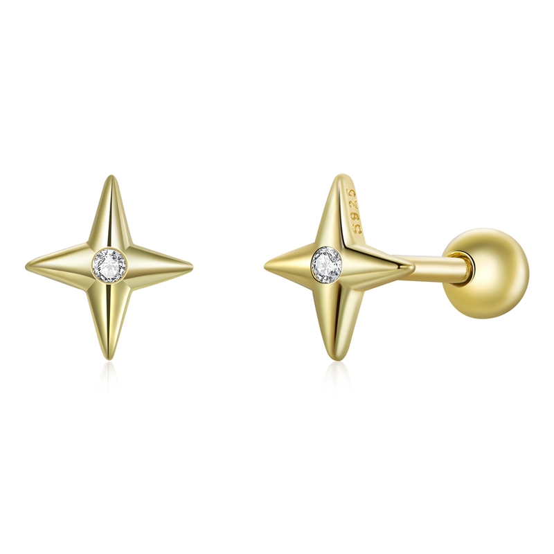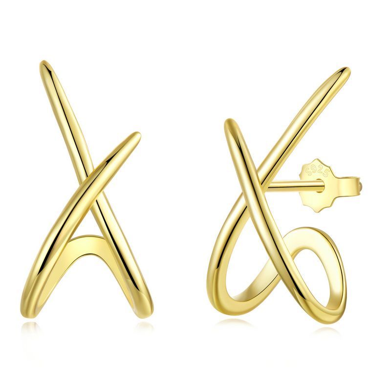 Brincos De Prata Esterlina 925 Bamoer Para Mulheres , Cor Dourada , Elegante , Design Simples , Joia , Presente