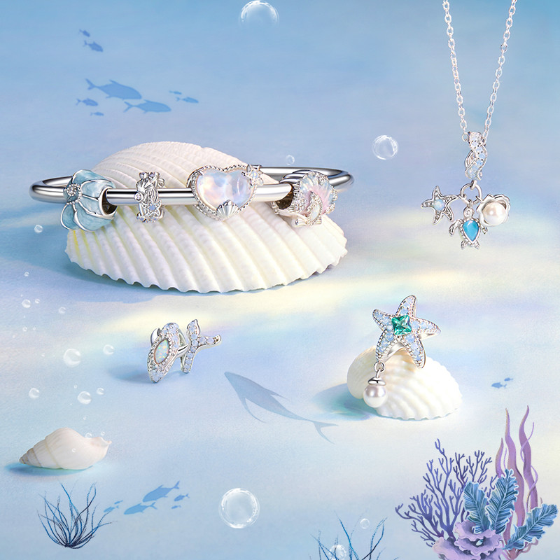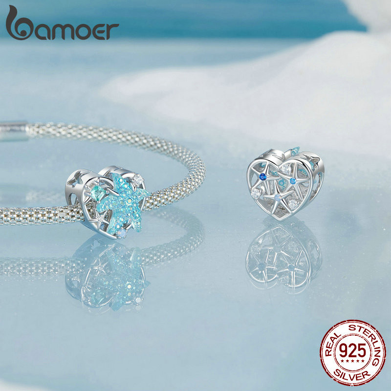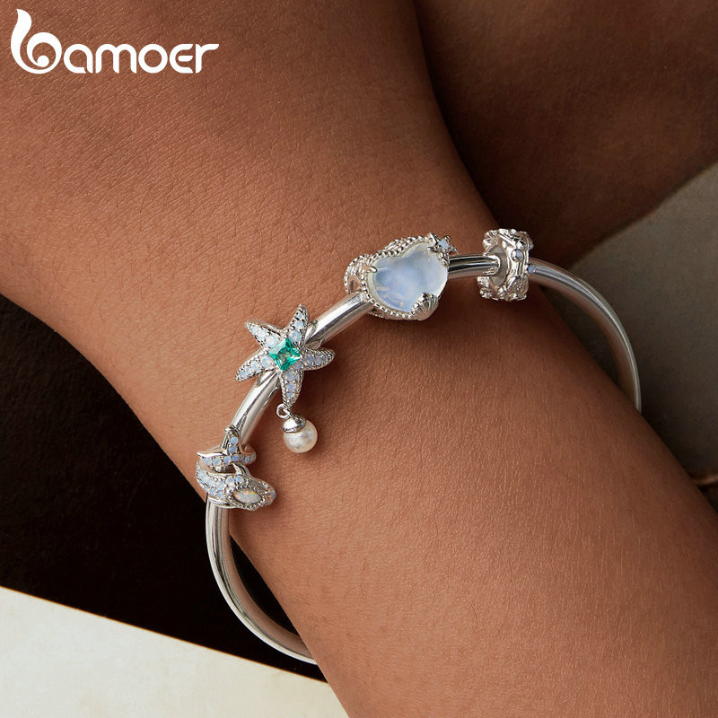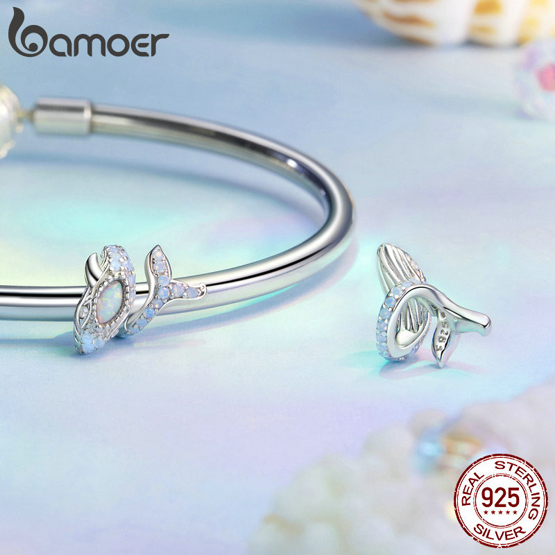 Bamoer 925 Prata Esterlina Charme Oceano Verão Série Concha Peixe Mar Design Pingente DIY Para Pulseira Colar Presente F