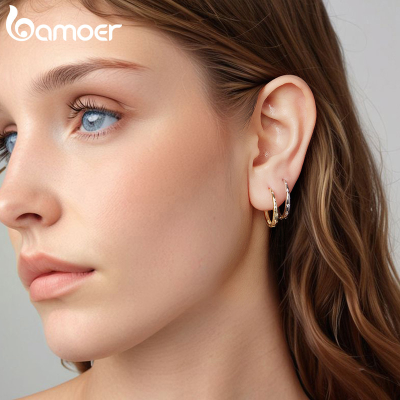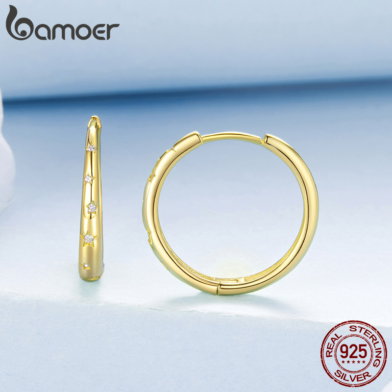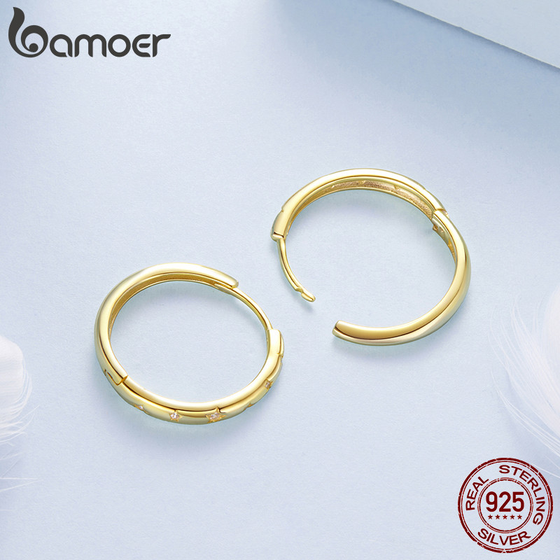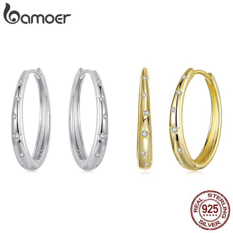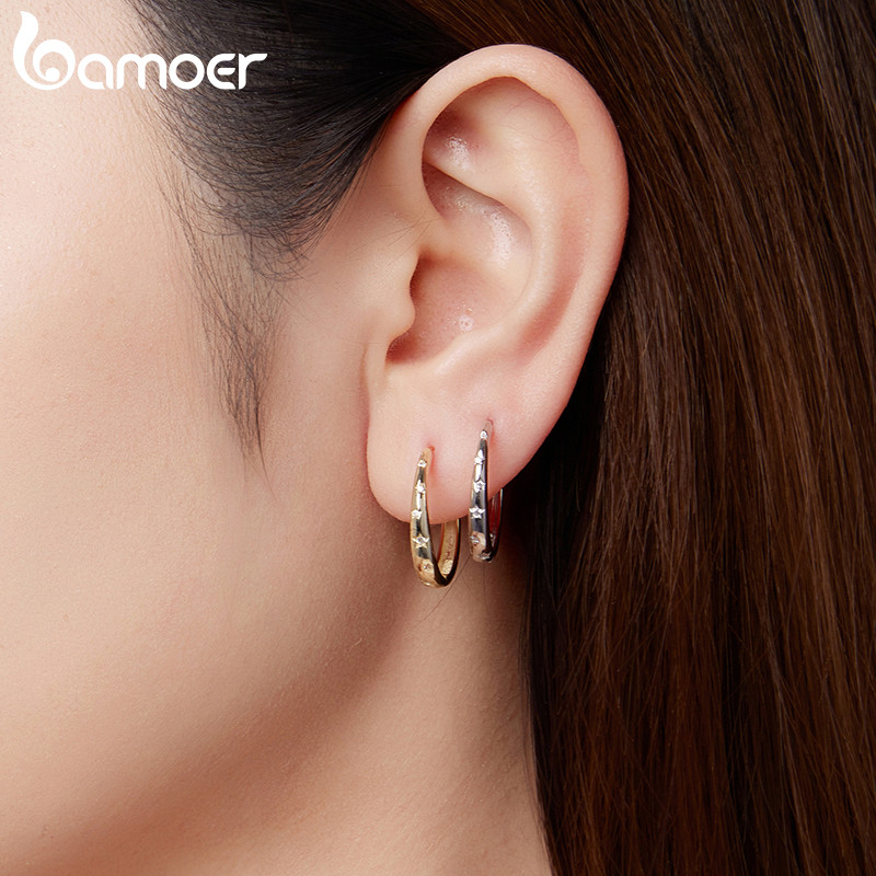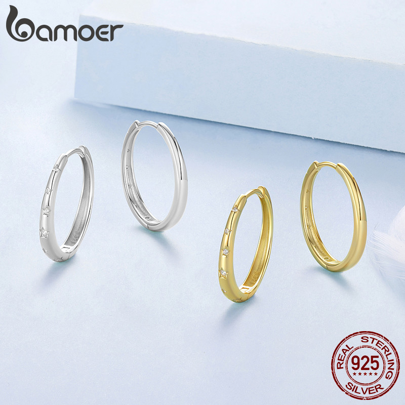 Brincos De Prata Esterlina 925 Bamoer , Joias Minimalistas Estreladas De Dois Tons , Presente Feminino