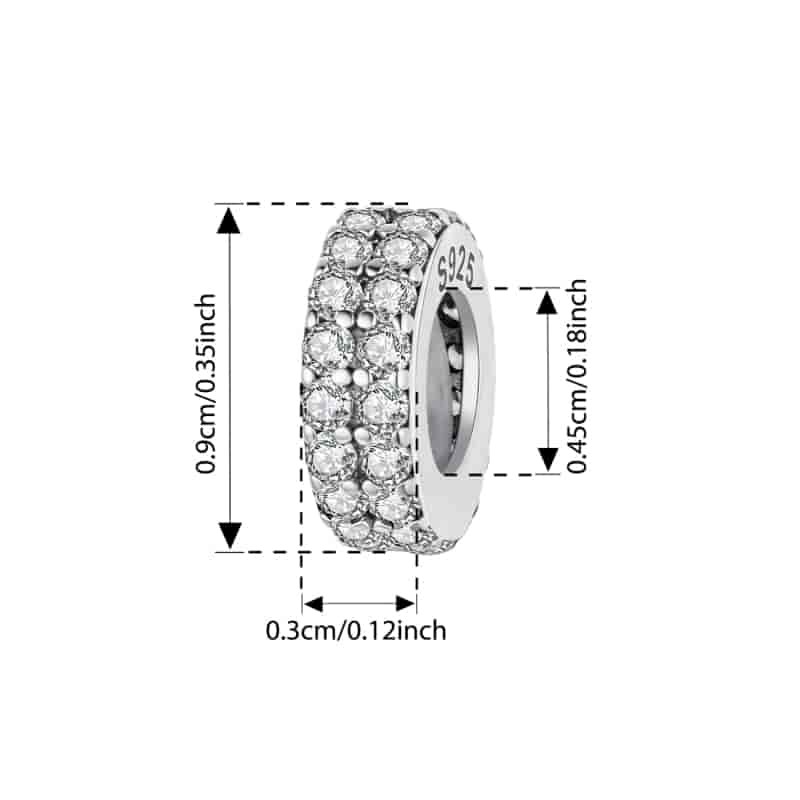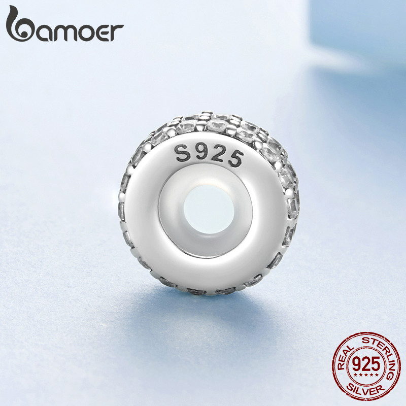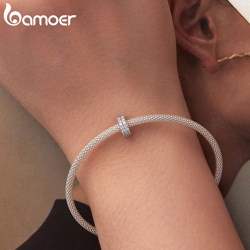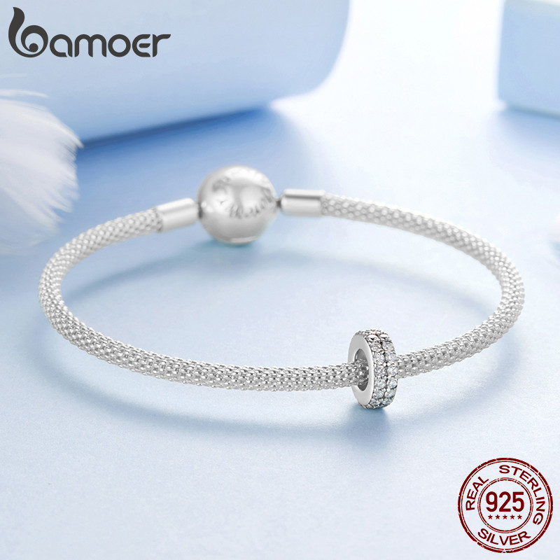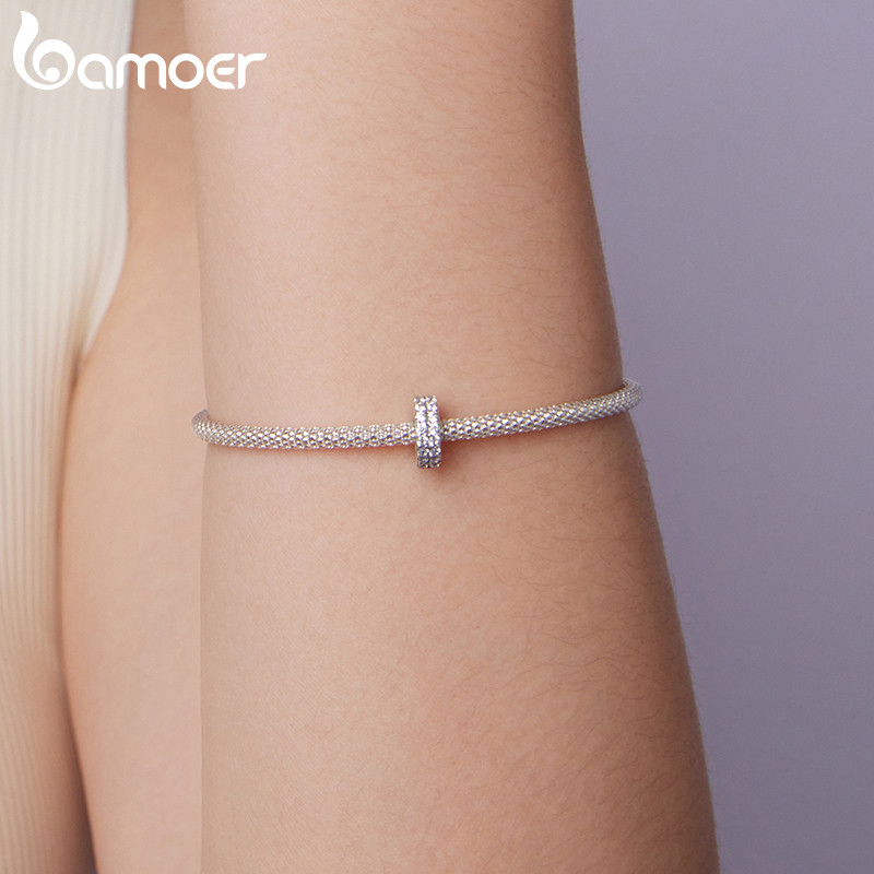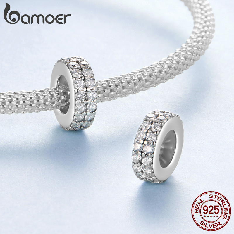 Bamoer 925 Prata Esterlina Pingente Dupla Camada Brilhante Quadrado Diamante Silicone Espaçador Grânulo Pulseira Moda An