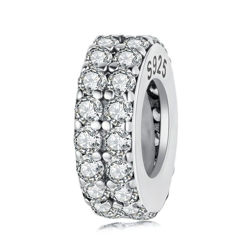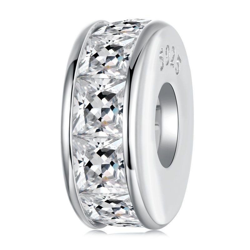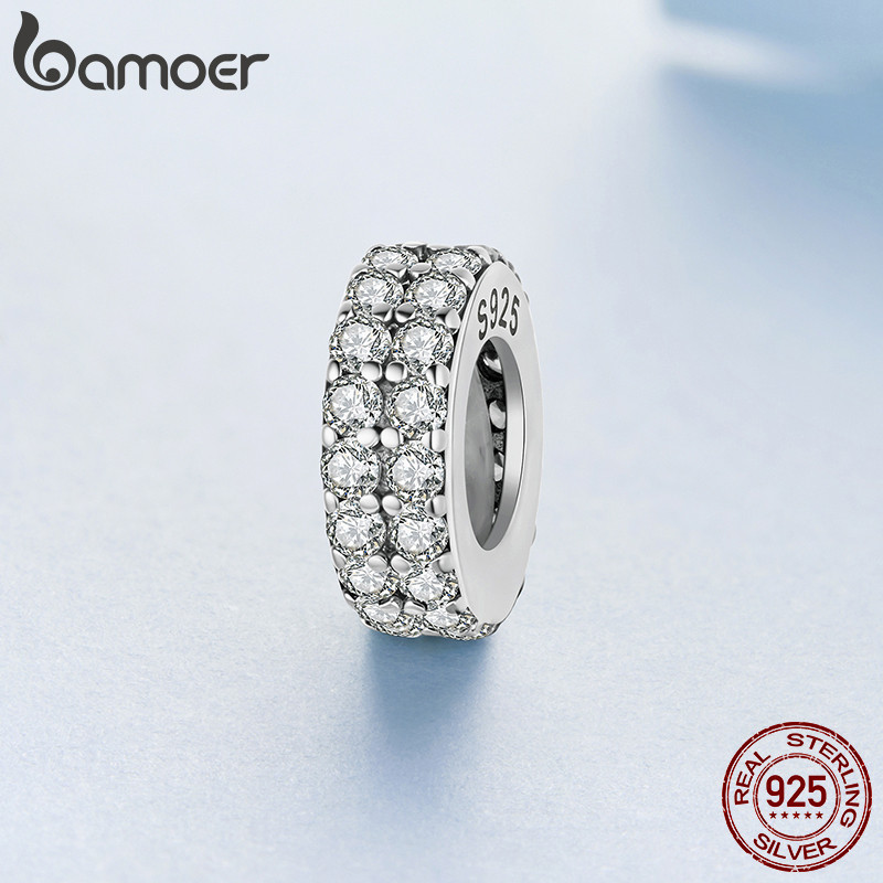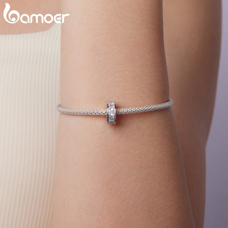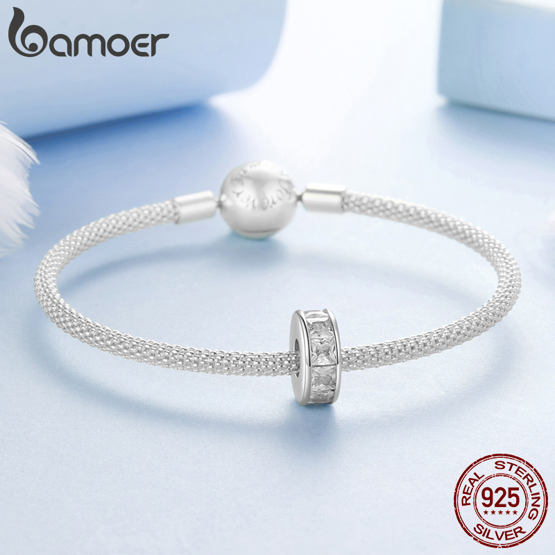 Bamoer 925 Prata Esterlina Pingente Espumante Quadrado Diamante Silicone Espaçador Grânulo Pulseira Moda Anti-Alérgico J