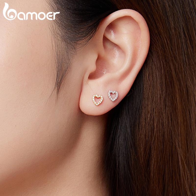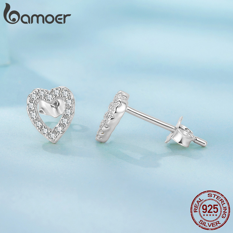Brincos De Prata Esterlina 925 Bamoer Com Design De Coração , Joias , Presentes Para Mulheres