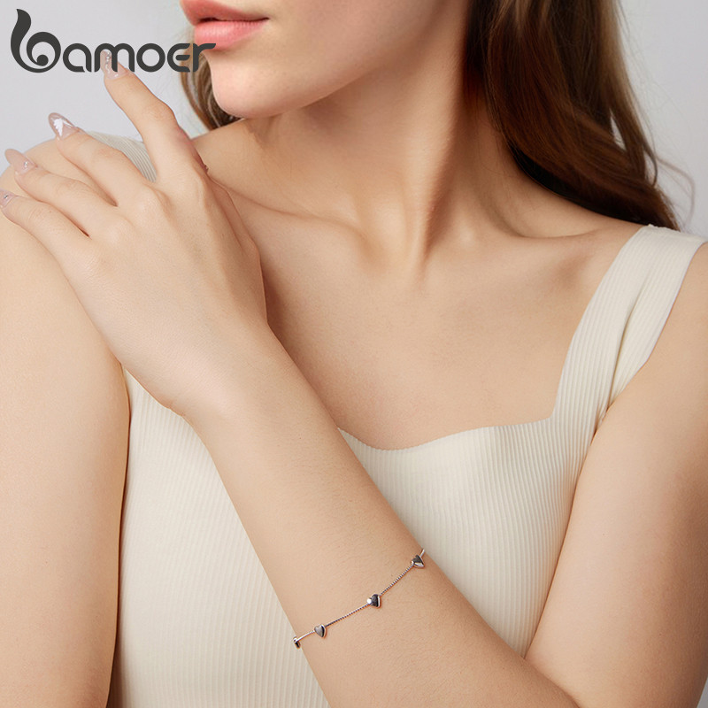 Pulseira De Prata Esterlina 925 Bamoer Amor Coração Arte Design Joias Da Moda Presente Feminino