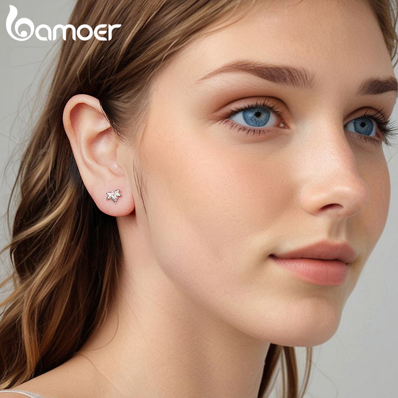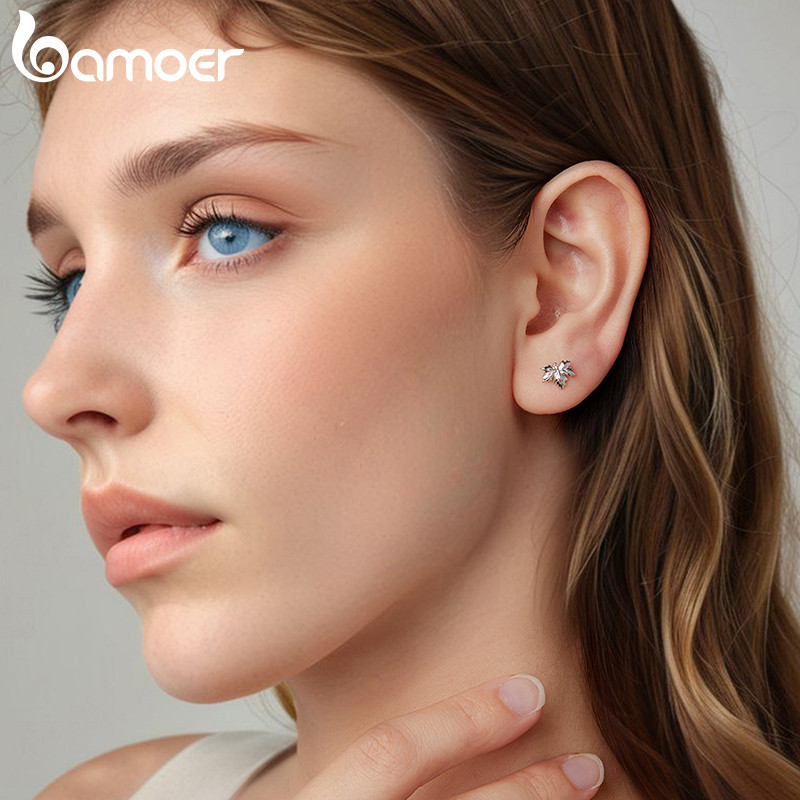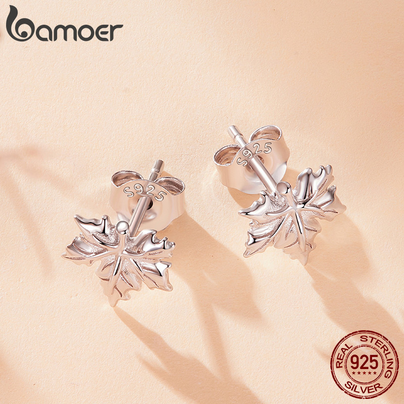 Bamoer 925 Brincos De Prata Esterlina Originais Outono Folha De Bordo Joias Antialérgicas Presente Feminino
