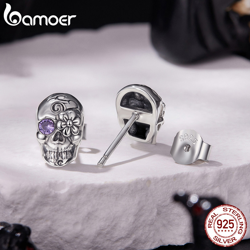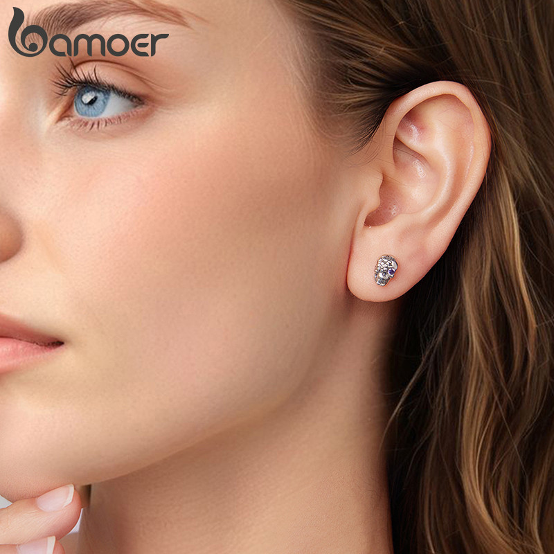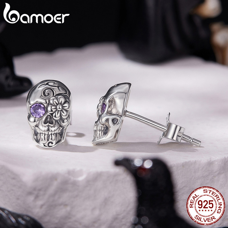 Bamoer Original 925 Prata Esterlina Halloween Crânio Brincos Design De Moda Jóias Presente Feminino