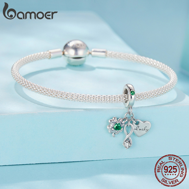 Bamoer 925 Prata Esterlina Charme Trevo De Quatro Folhas Pingente DIY Para Pulseira Presentes