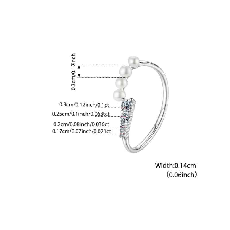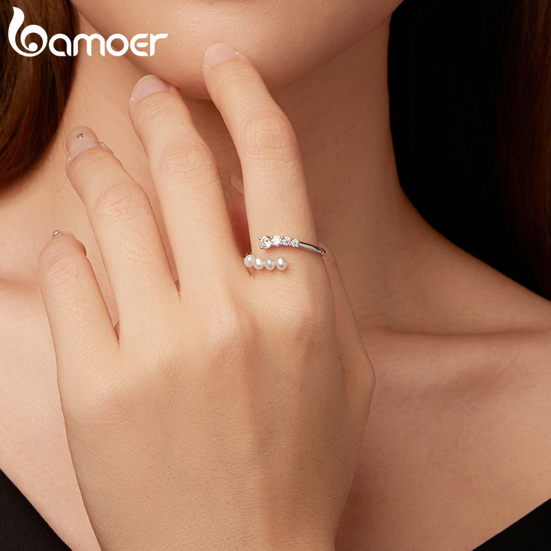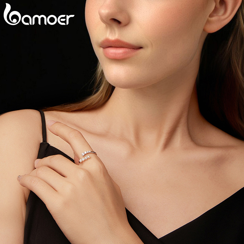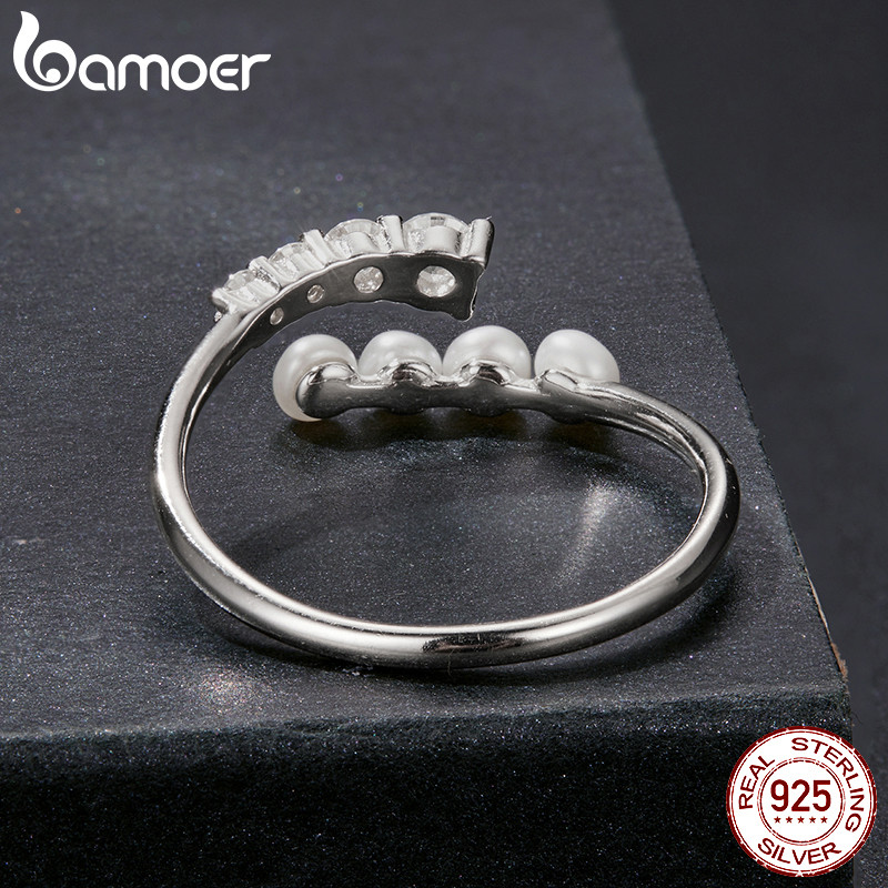 Bamoer 925 Prata Esterlina Anel Aberto Tamanho Ajustável Pérola Moissanite Moda Jóias Presentes Para Mulher MSR084-E