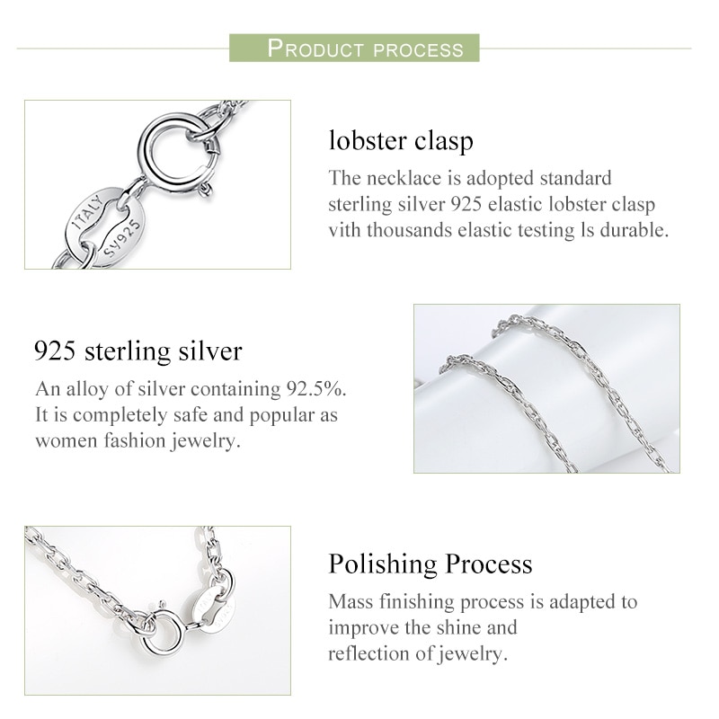 Bamoer Colar Corrente 100 % Prata Esterlina 925 Fecho Ajustável