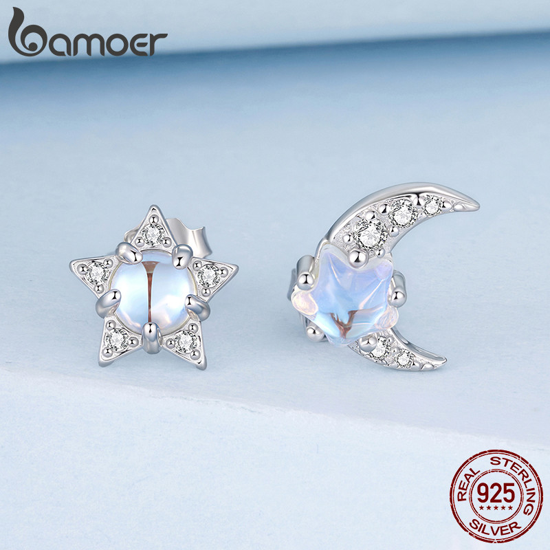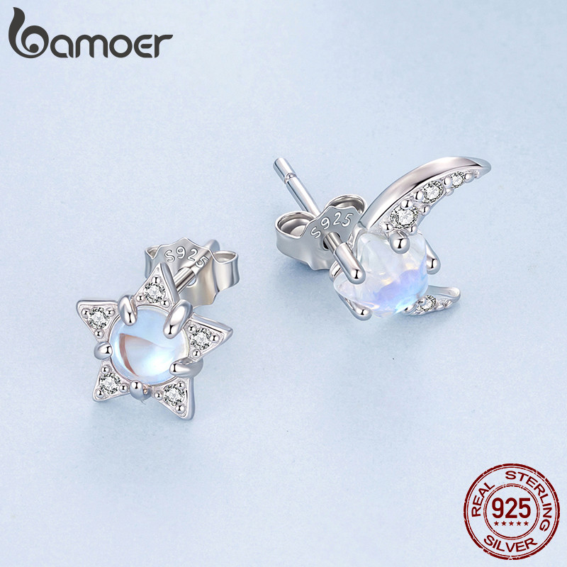 Brincos De Prata Esterlina 925 Bamoer Estrela E Lua Design Joias Presentes Para Mulheres