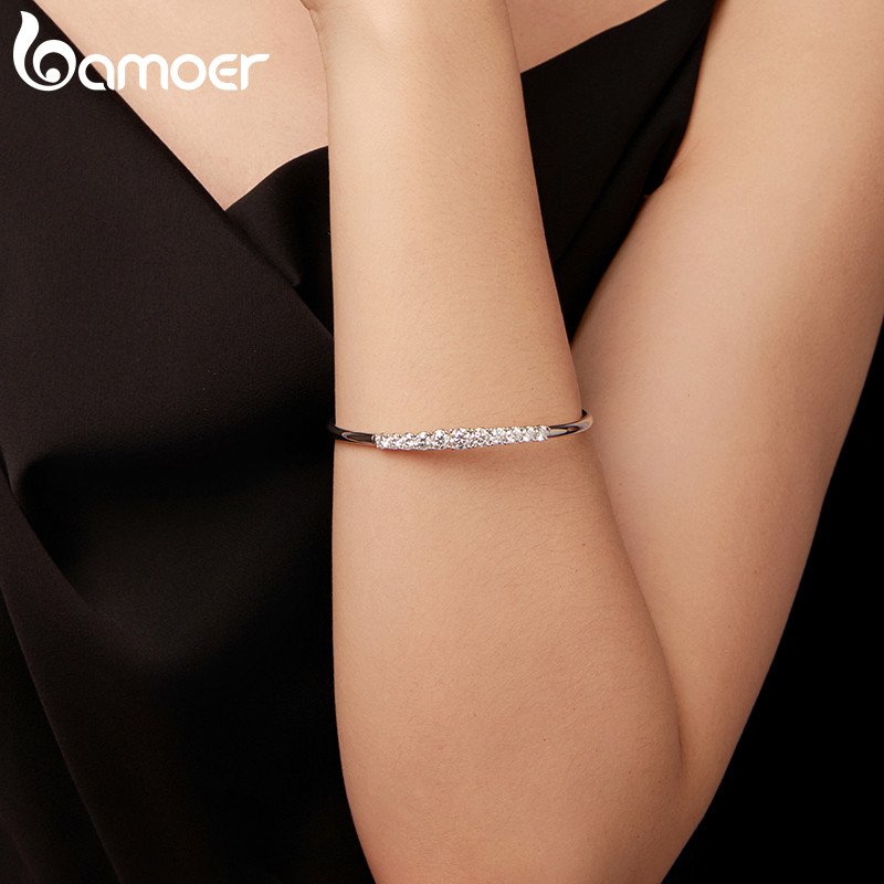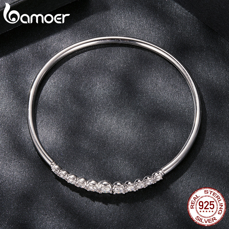Pulseira De Prata Esterlina 925 Bamoer Moissanite Ajustável Joias Elásticas Presentes Para Mulheres