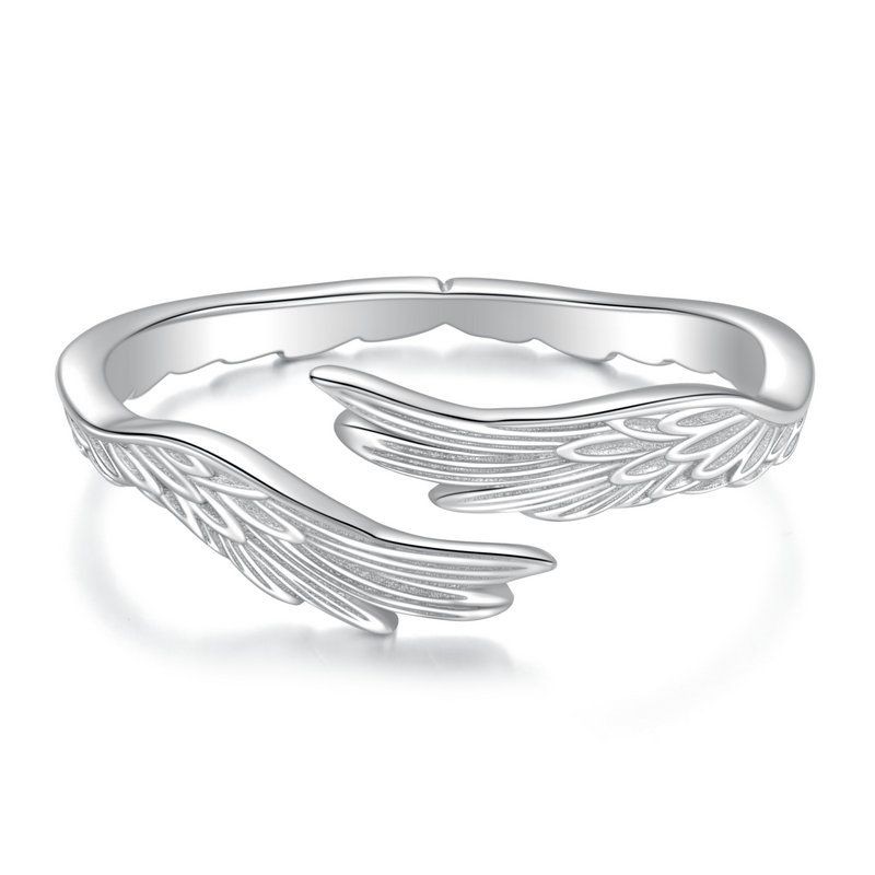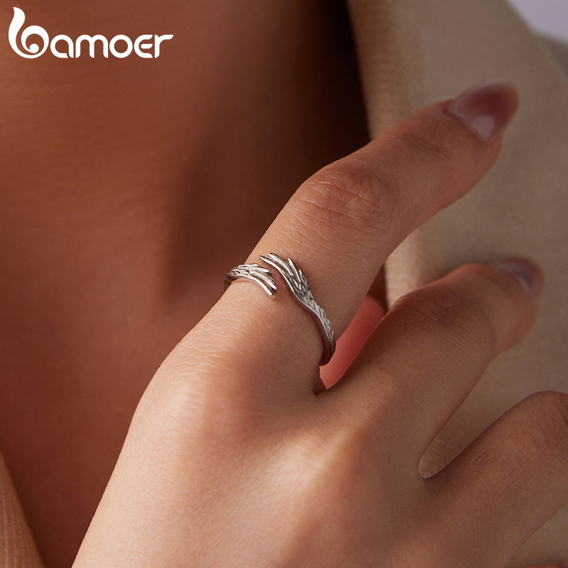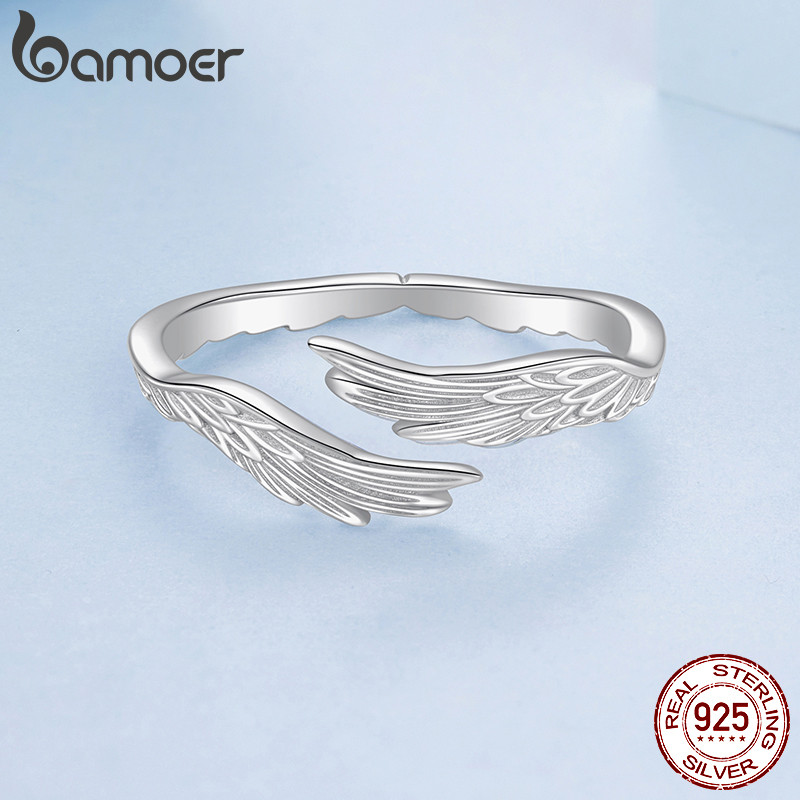 Bamoer Original 925 Anel De Prata Esterlina Asas Da Guarda Ajustável Simples Jóias Personalizadas Presente Feminino