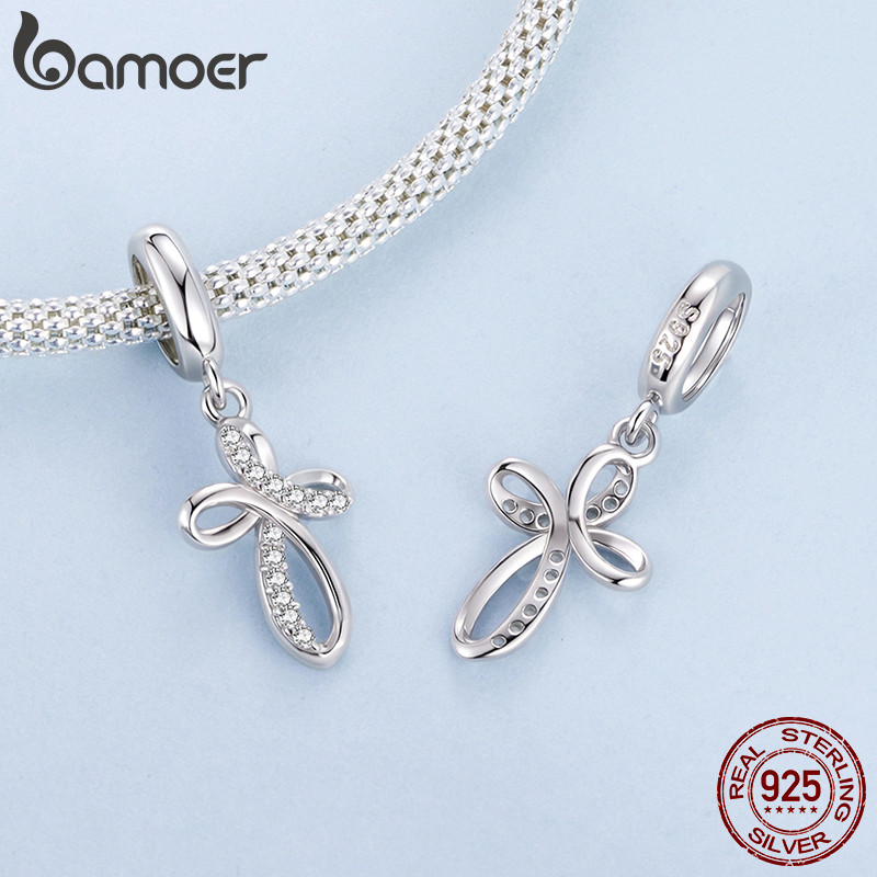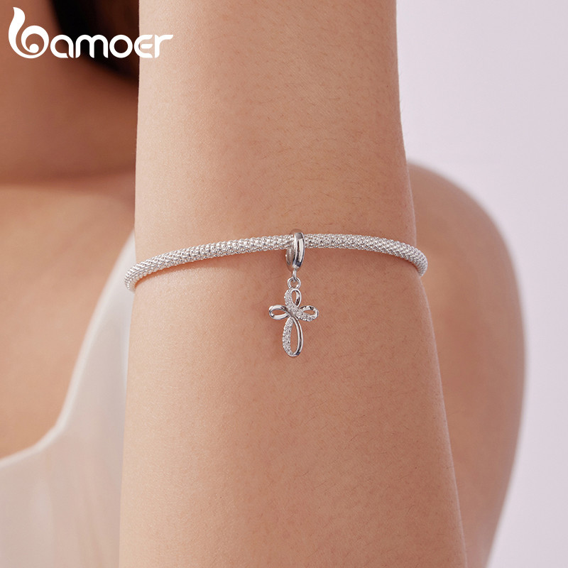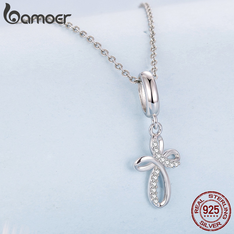 Bamoer 925 Prata Esterlina Charme Cruz Pingente DIY Para Pulseira Presentes Mulheres