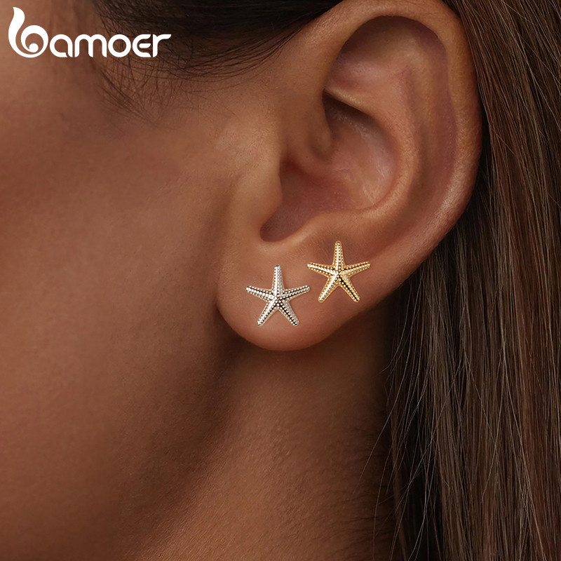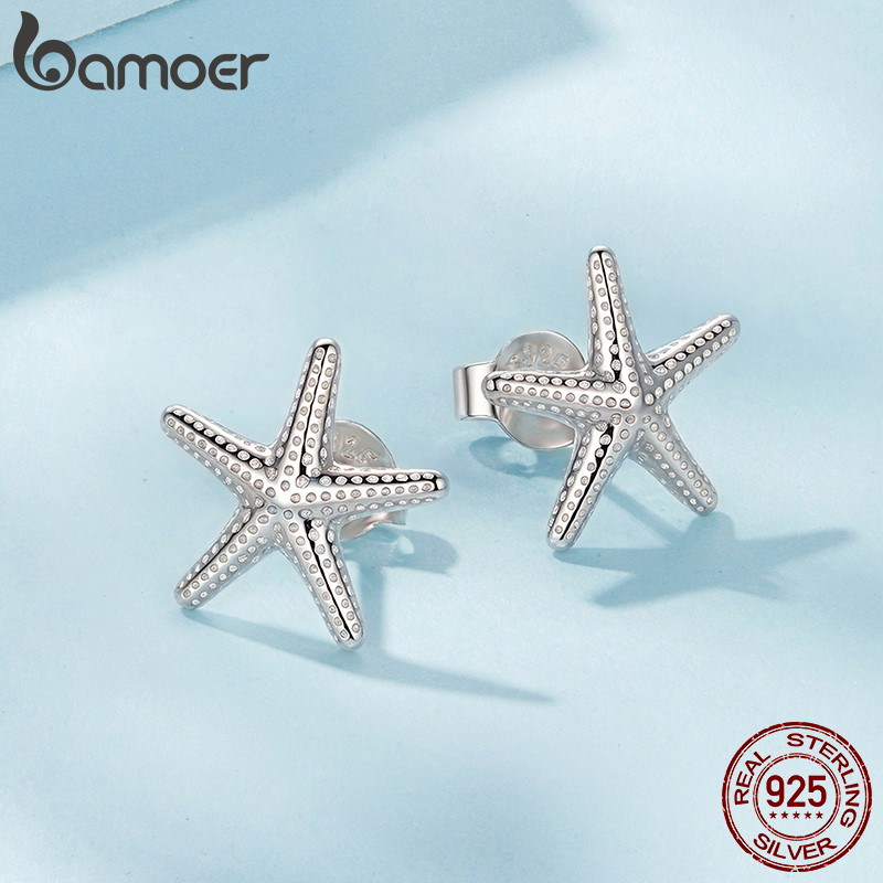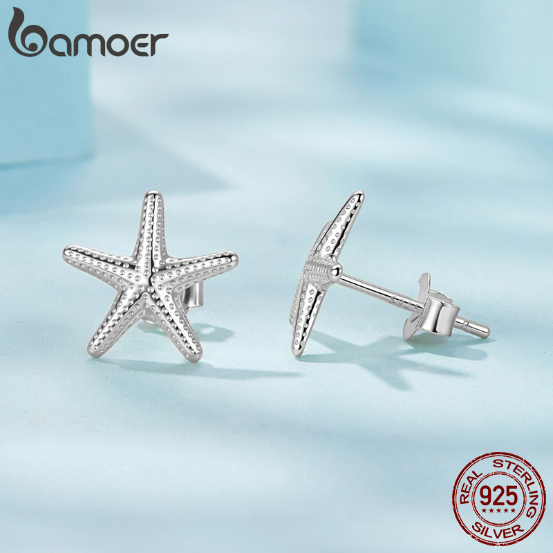 Brincos De Prata Esterlina 925 Bamoer , Joias Pequenas Com Design De Estrela Do Mar , Presentes Para Mulheres