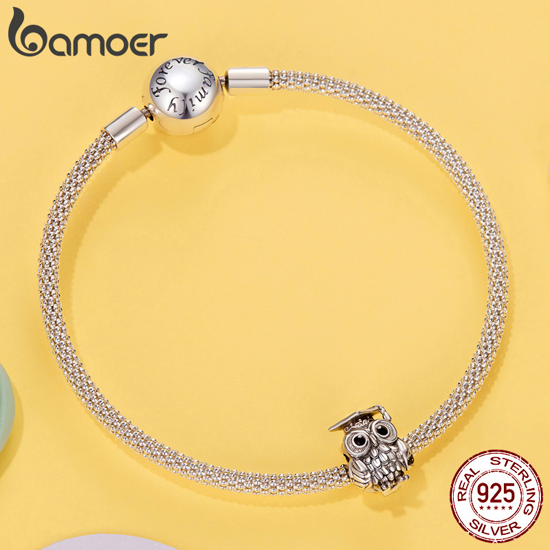 Bamoer 925 Prata Esterlina Pingente Sabedoria Coruja Série De Formatura Acessório Pulseira Moda Jóias Presente Feminino