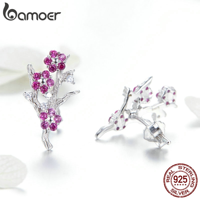 Bamoer Brincos De Tarraxa De Prata Esterlina 925 Blooming Ameixa Bse040