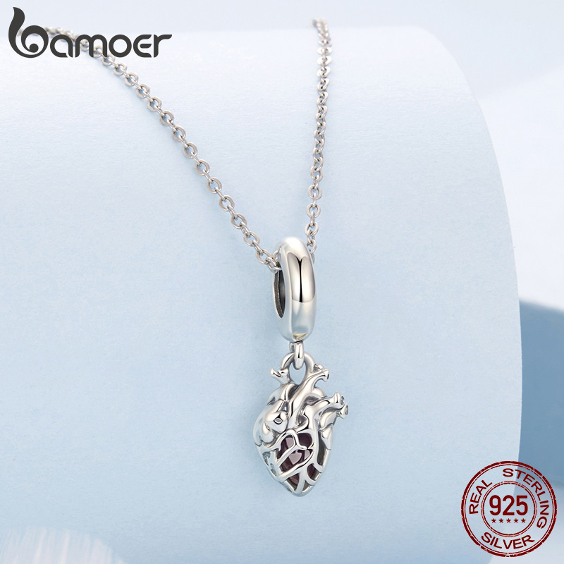 Bamoer 925 Prata Esterlina Charme Batendo Coração Pingente DIY Para Pulseira Presentes Mulheres