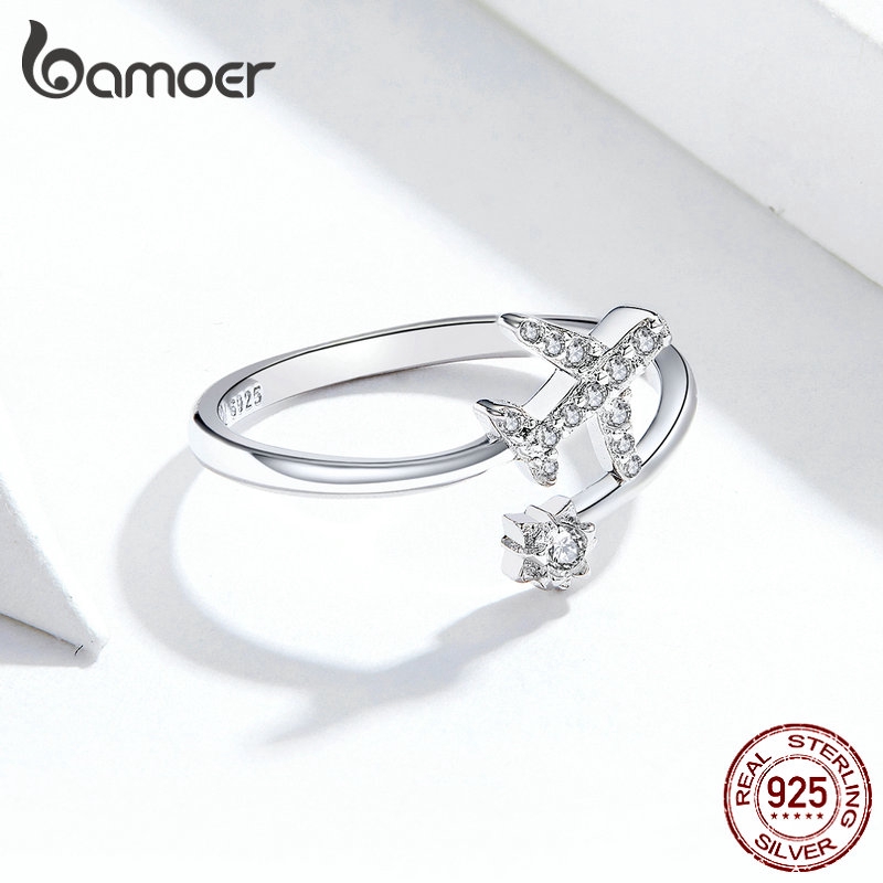 Bamoer 925 Silver Fashion Ring Anel De Prata Jóias Padrão De Viagem De Avião SCR623